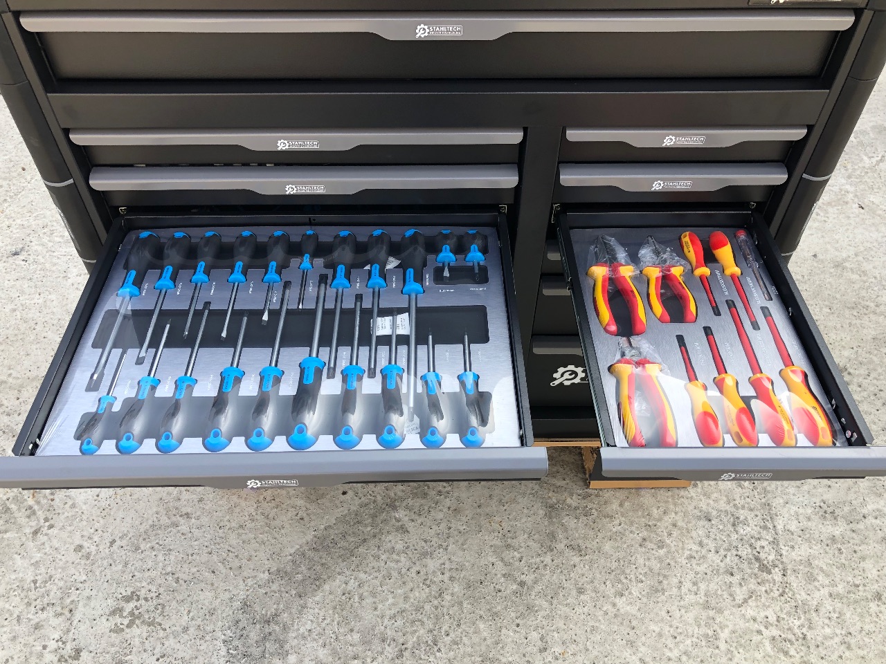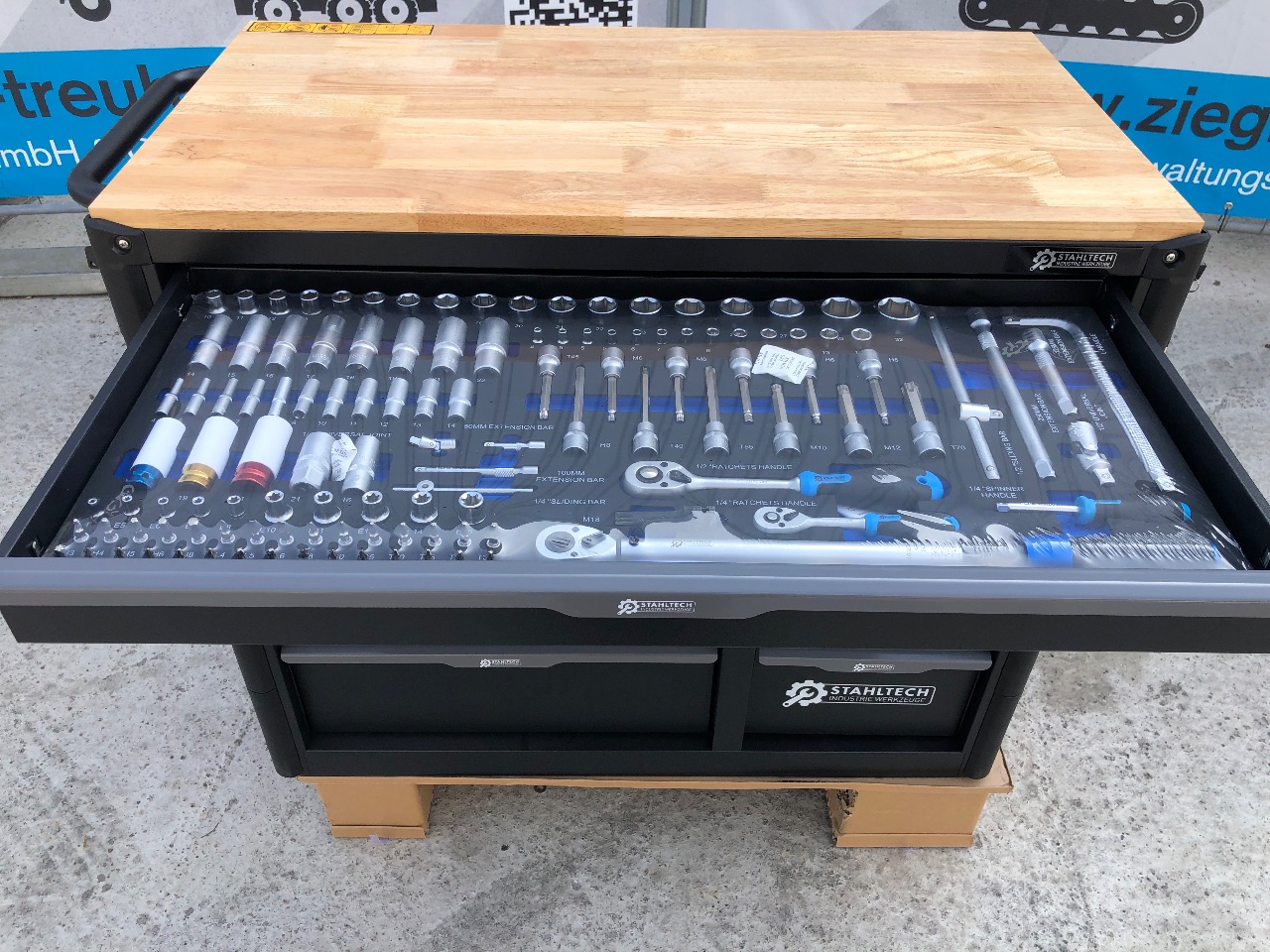 TOP (!!!) Werkstattwagen (neu) - (Stahltech, W4RMP13B) - (13 Schubladen) mit div. Kleinwerkzeugen (471-teilig)