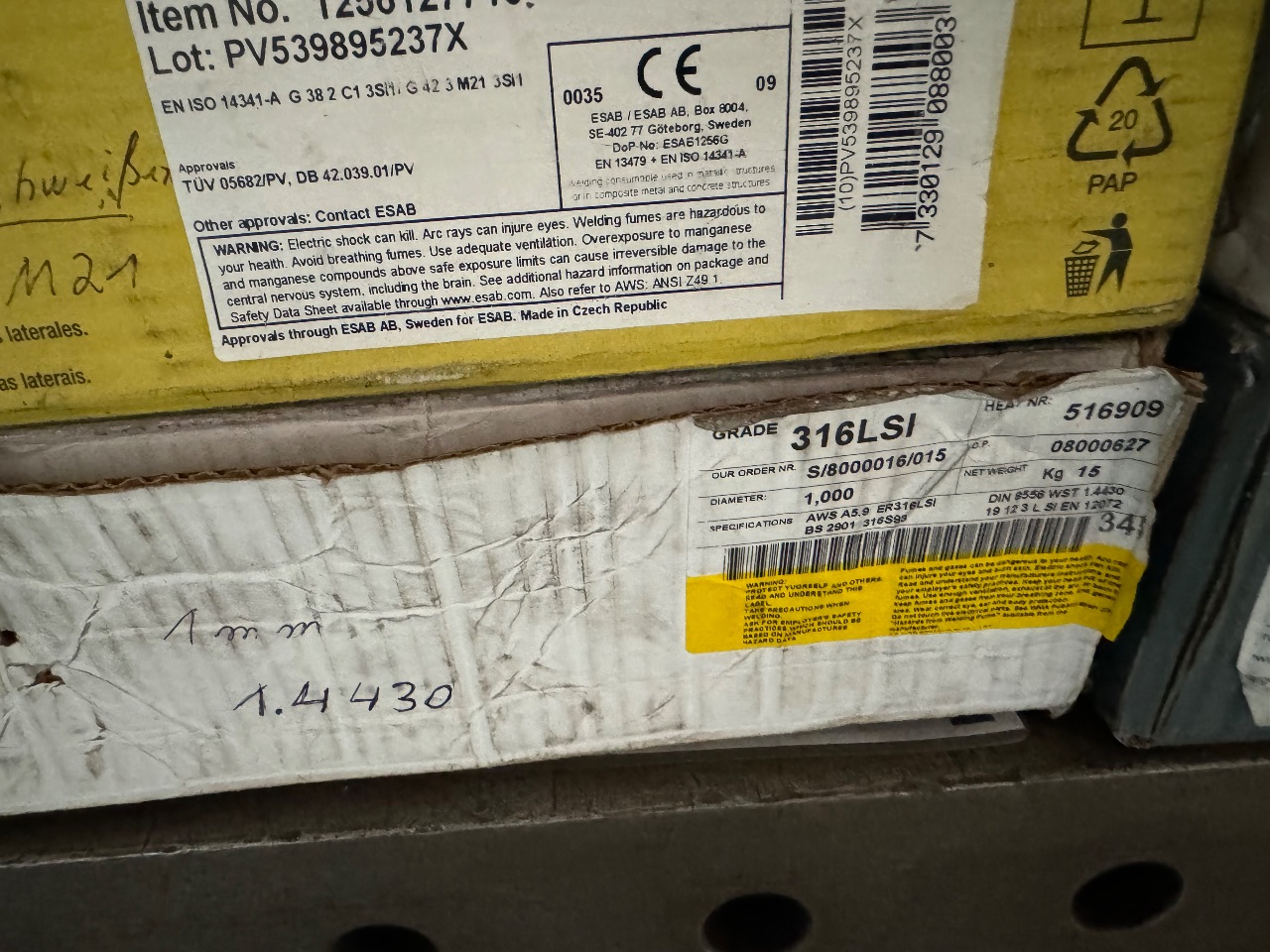 Posten Schweißdraht (ESAB, OK Autrod 16.95) - (Alunox, AX - 4842 MIG) - (ESAB, OK Autrod 12.56) - (316LSI)