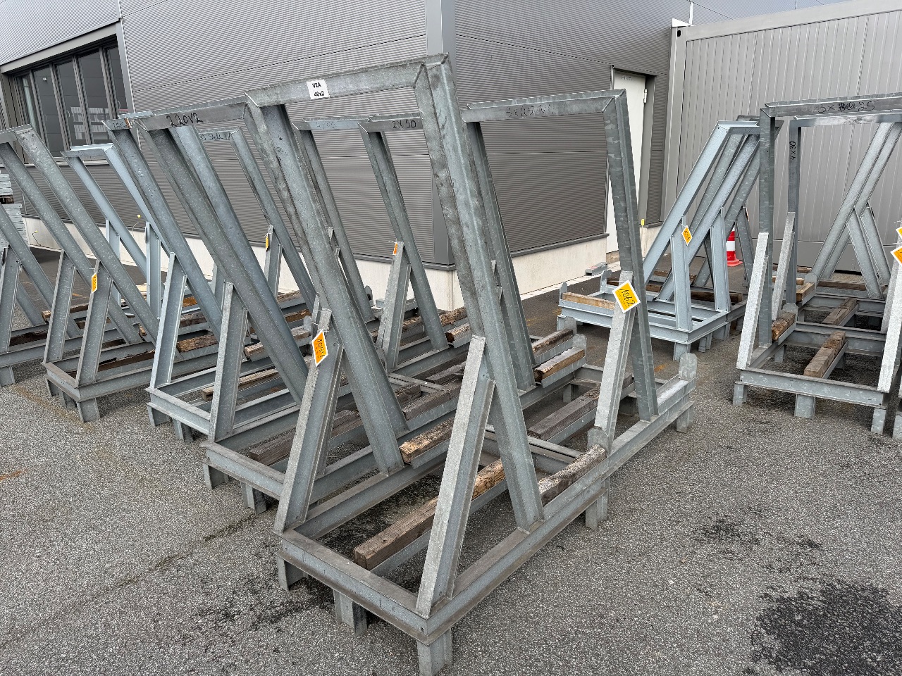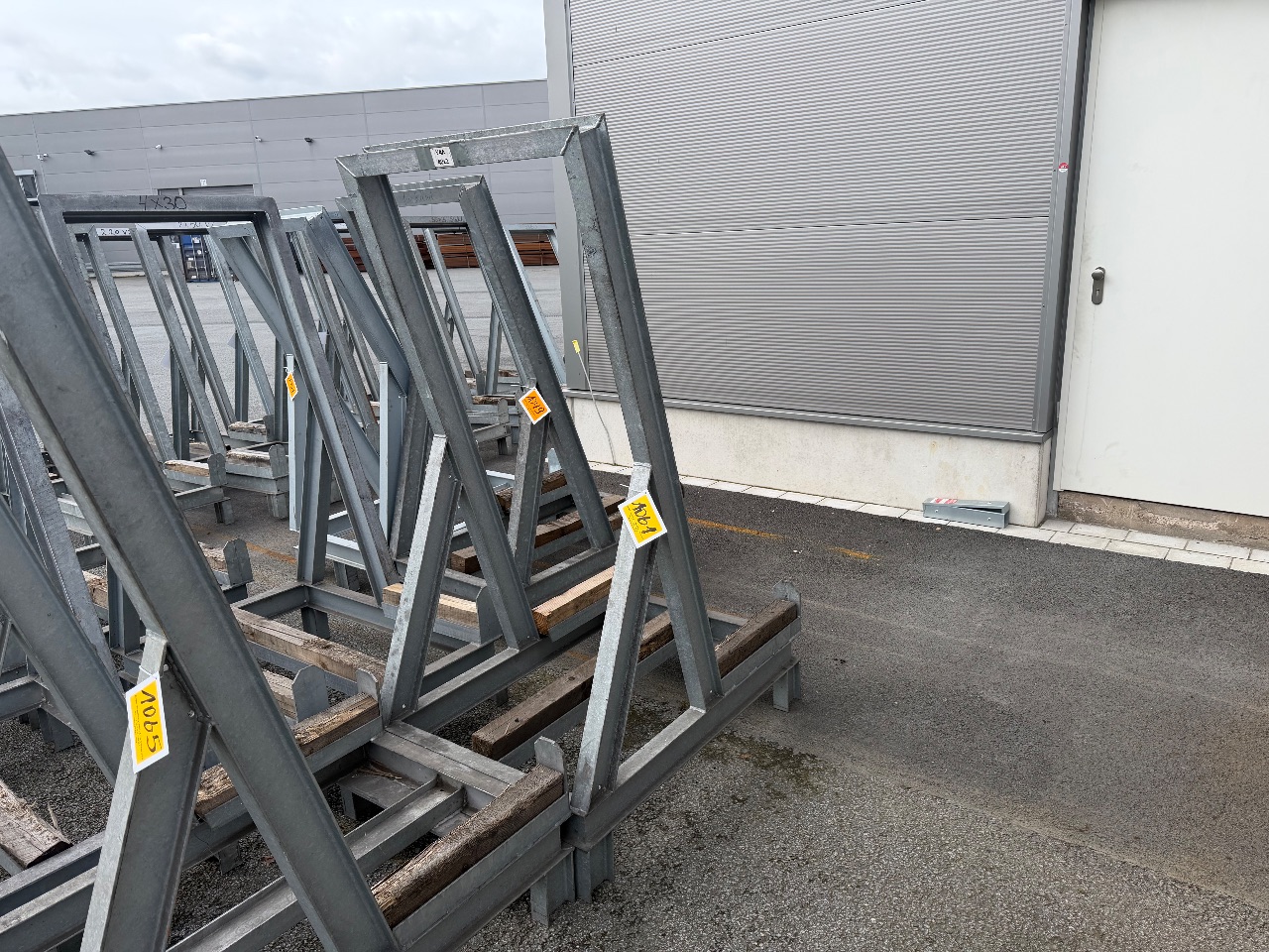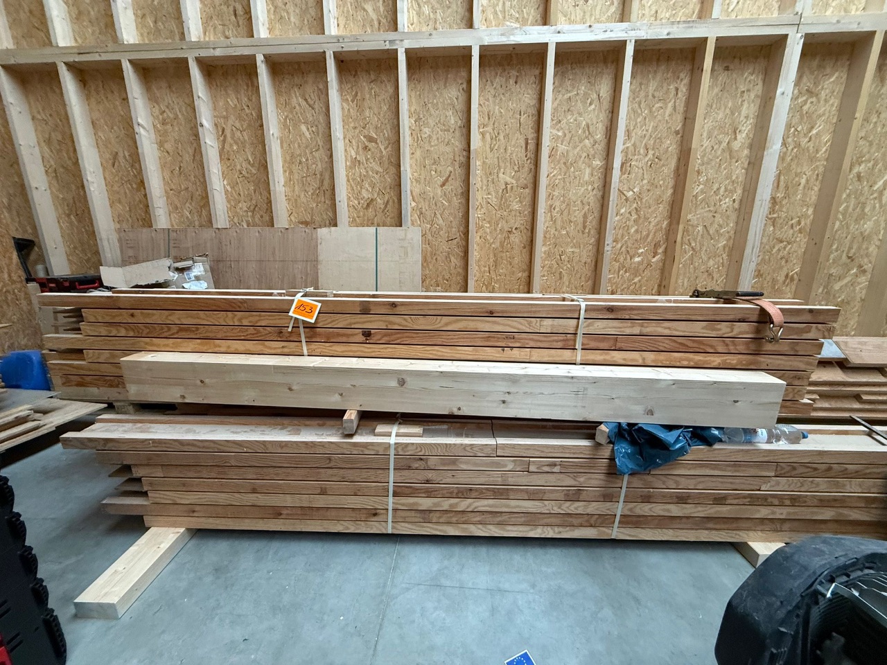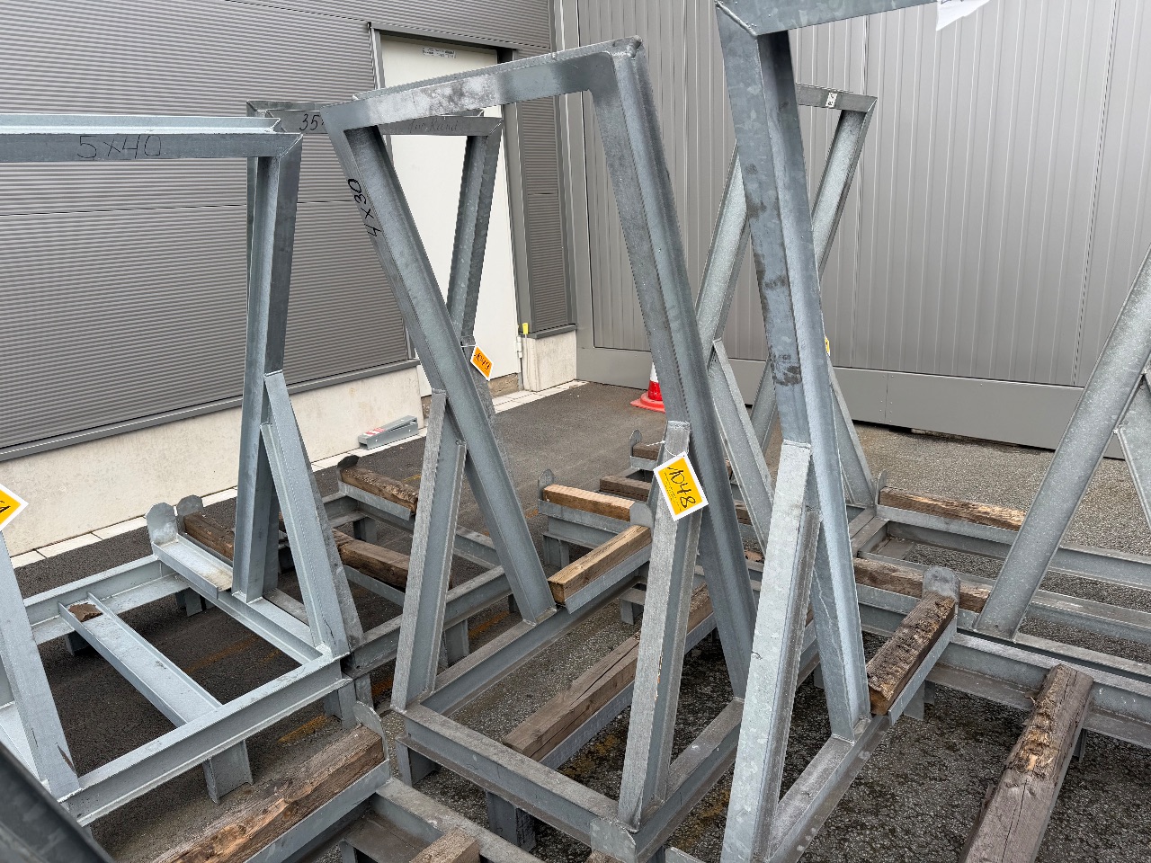 Hänge- und Regalanlage auf Holz-Podest (3) - (Bruynzeel) - (Bj.: 2002) - (Abm.: 610 x 400 x 273 cm) - (je 5 Hängevorrichtungen + 2 Ablageböden)