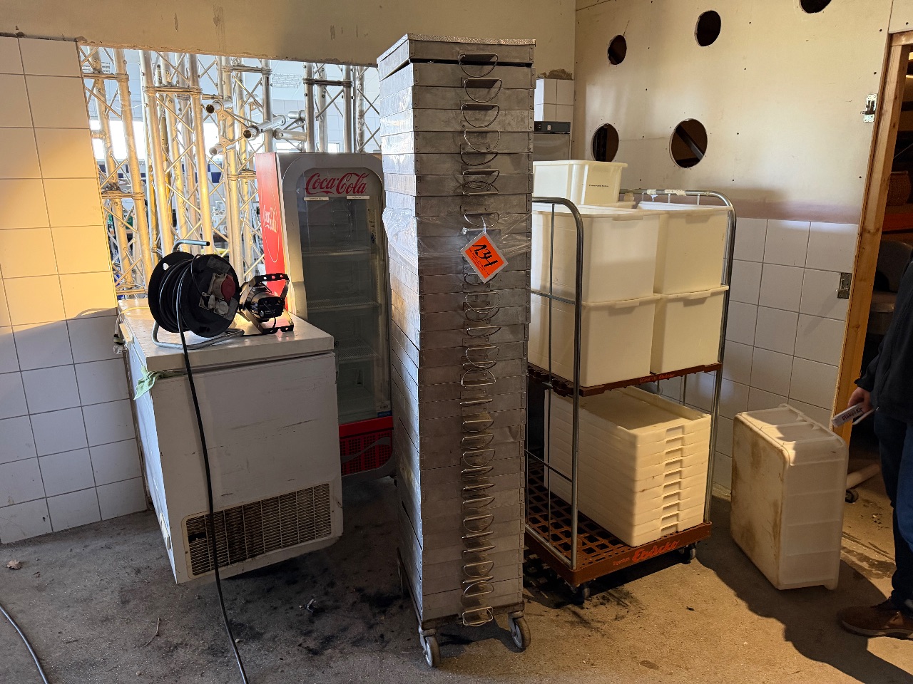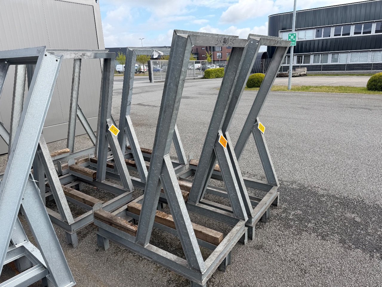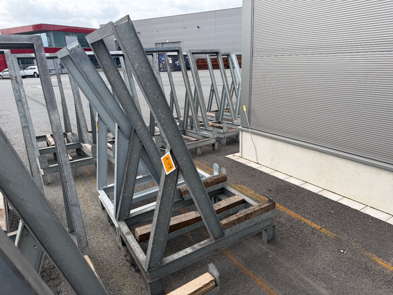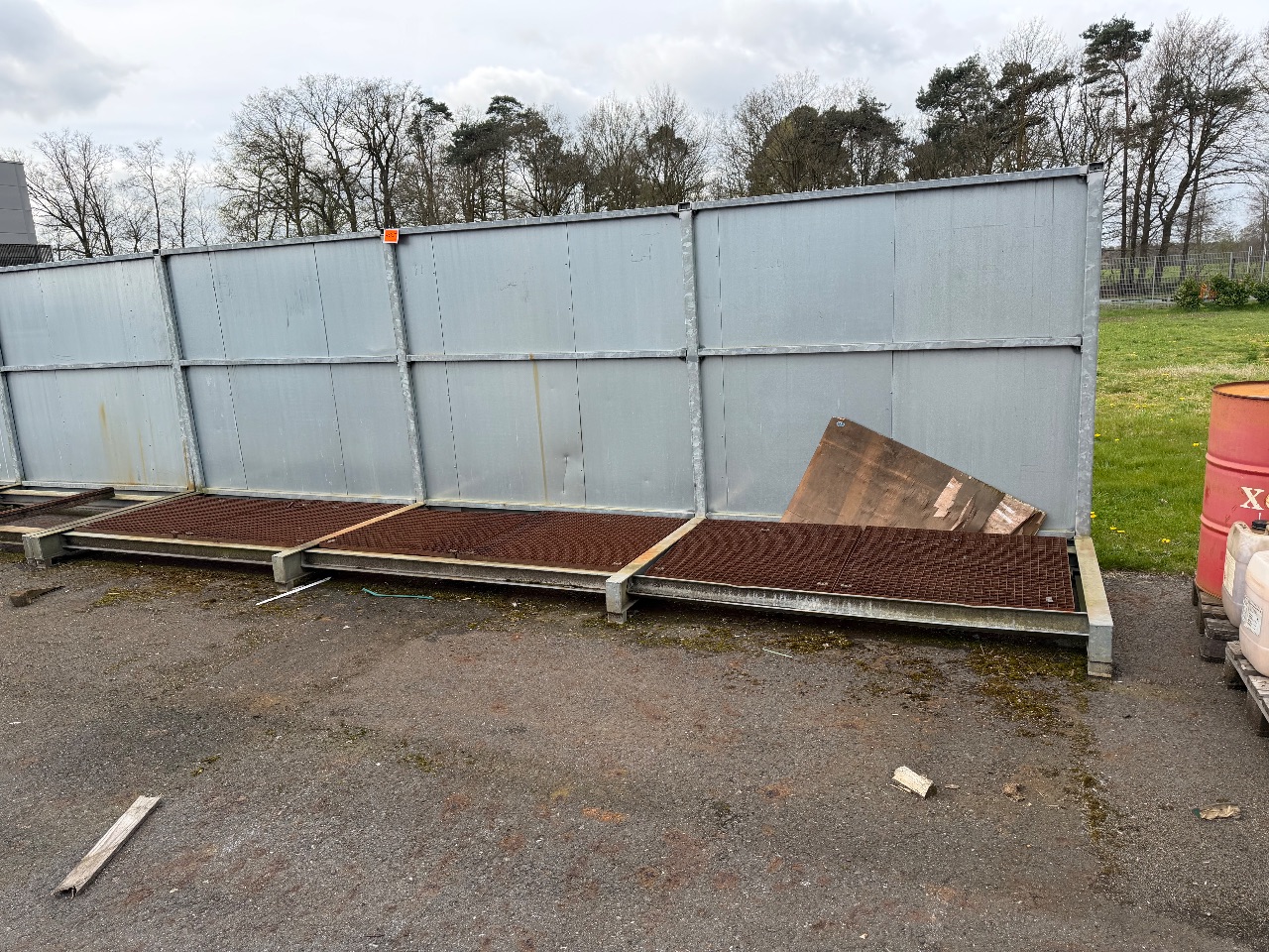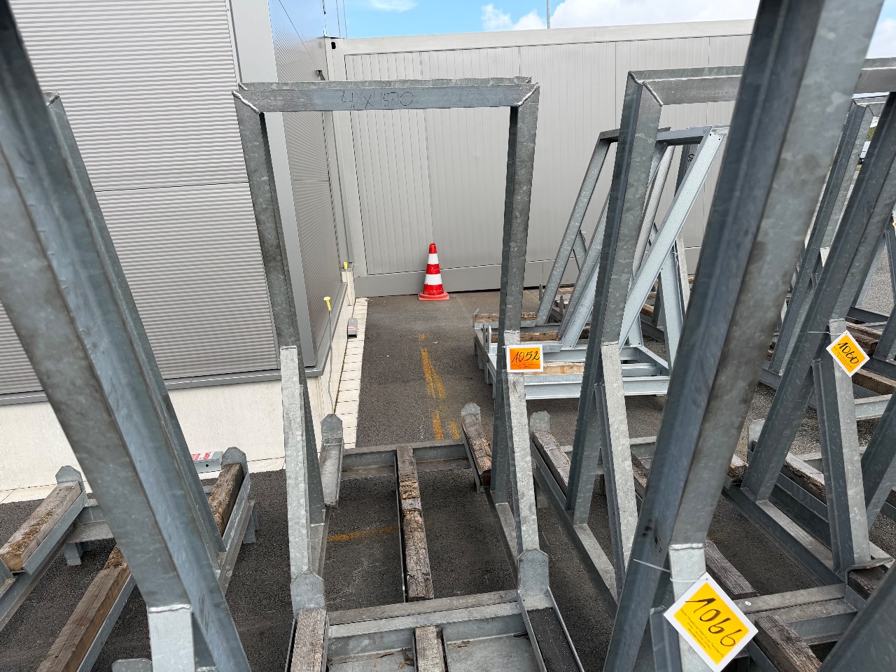 Hänge- und Regalanlage auf Holz-Podest (3) - (Bruynzeel) - (Bj.: 2002) - (Abm.: 610 x 400 x 273 cm) - (je 5 Hängevorrichtungen + 2 Ablageböden)