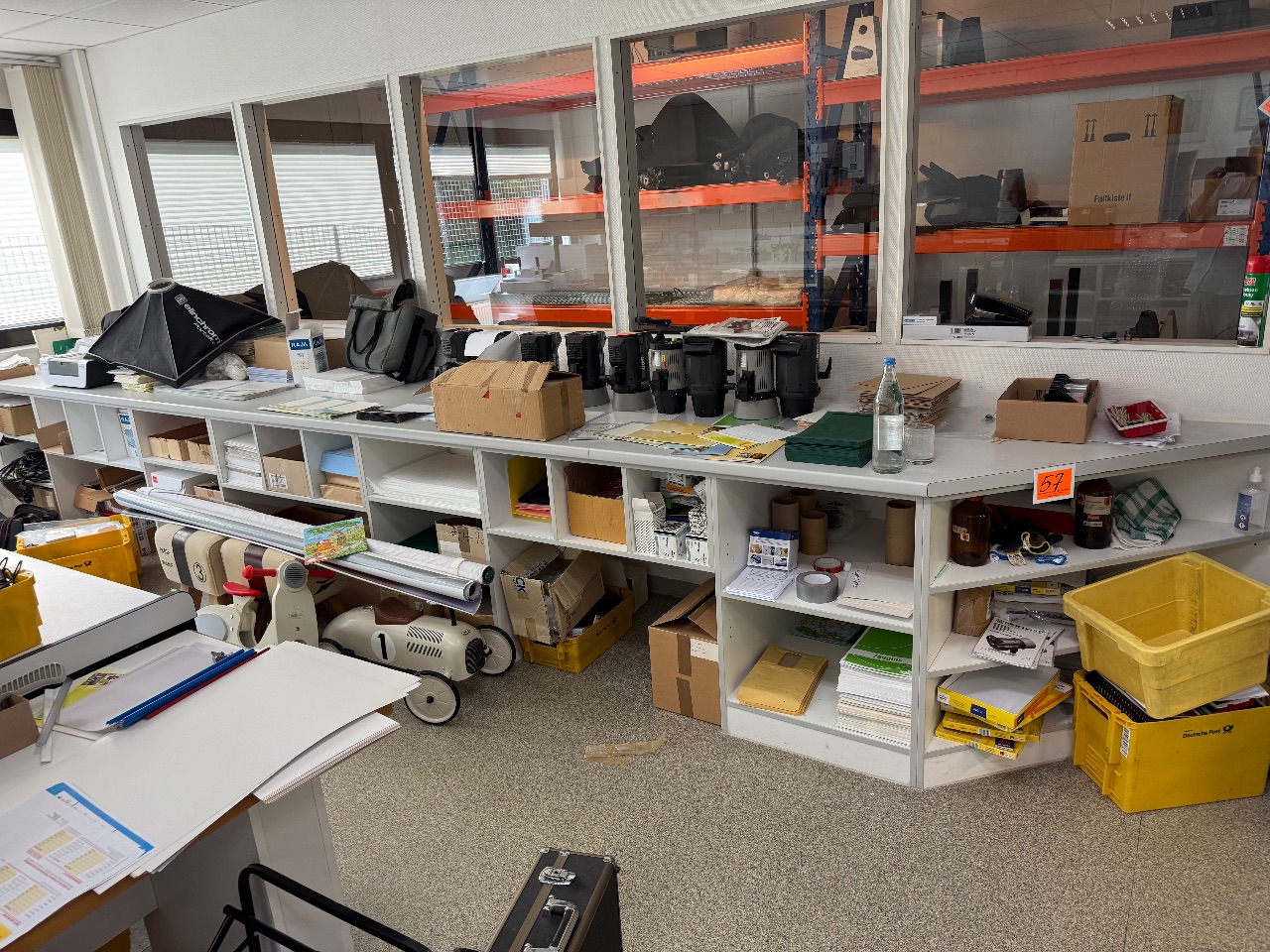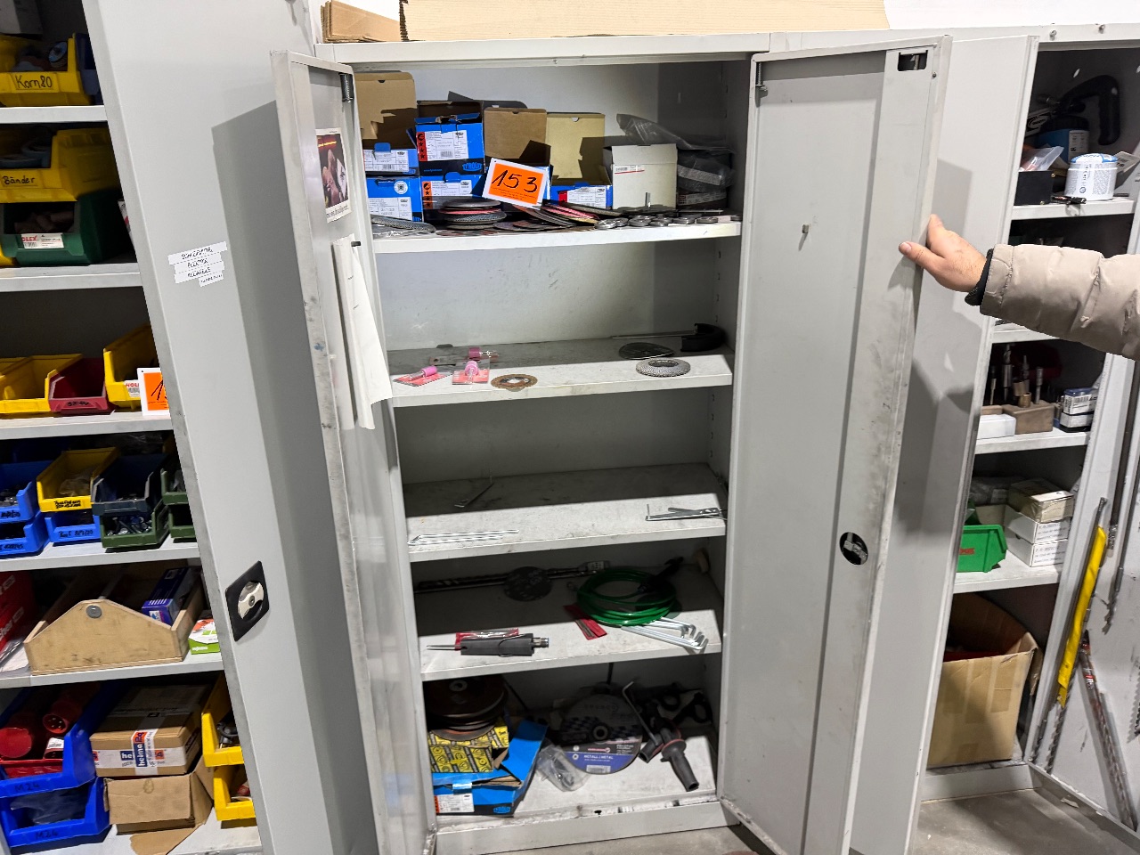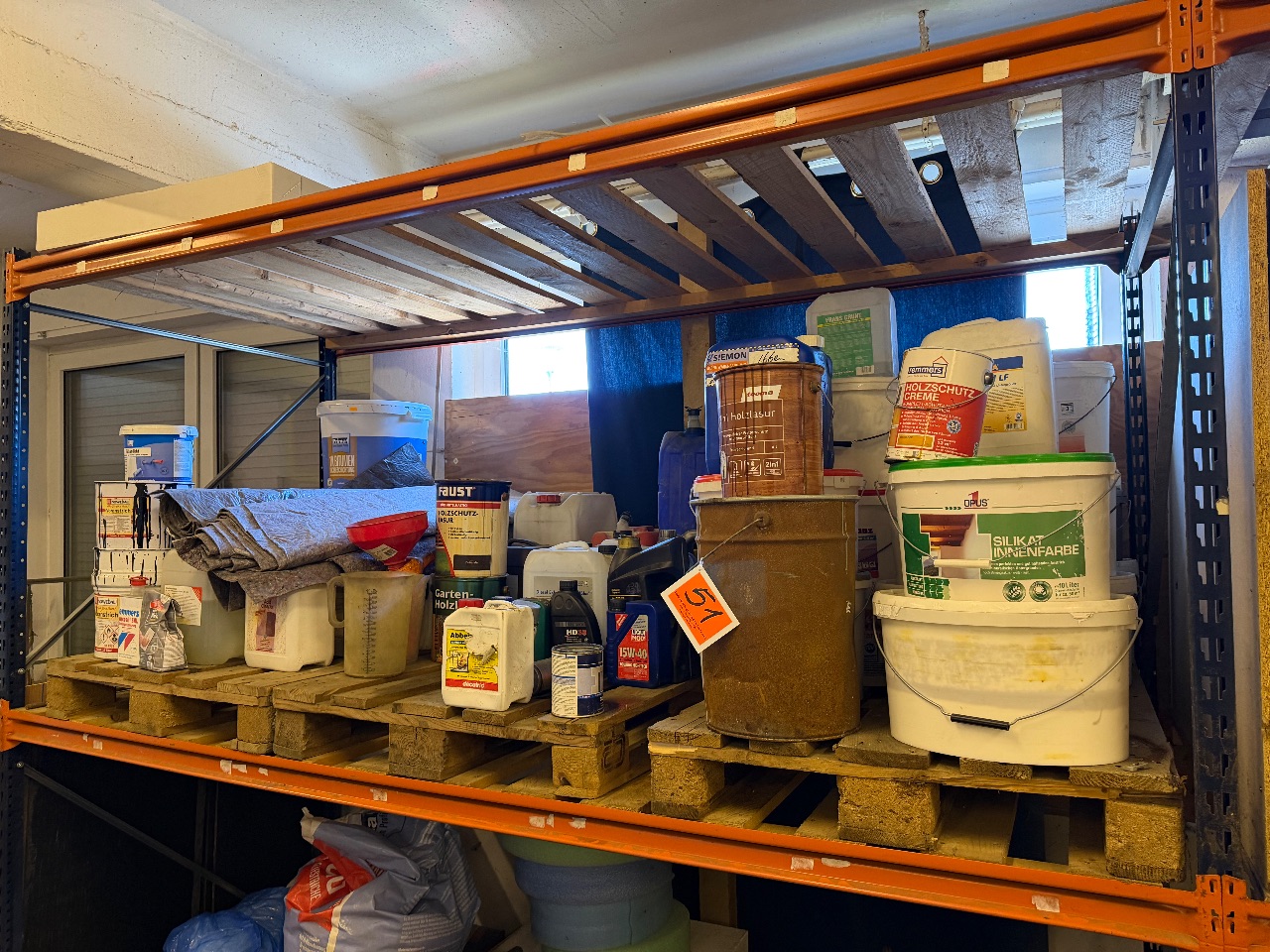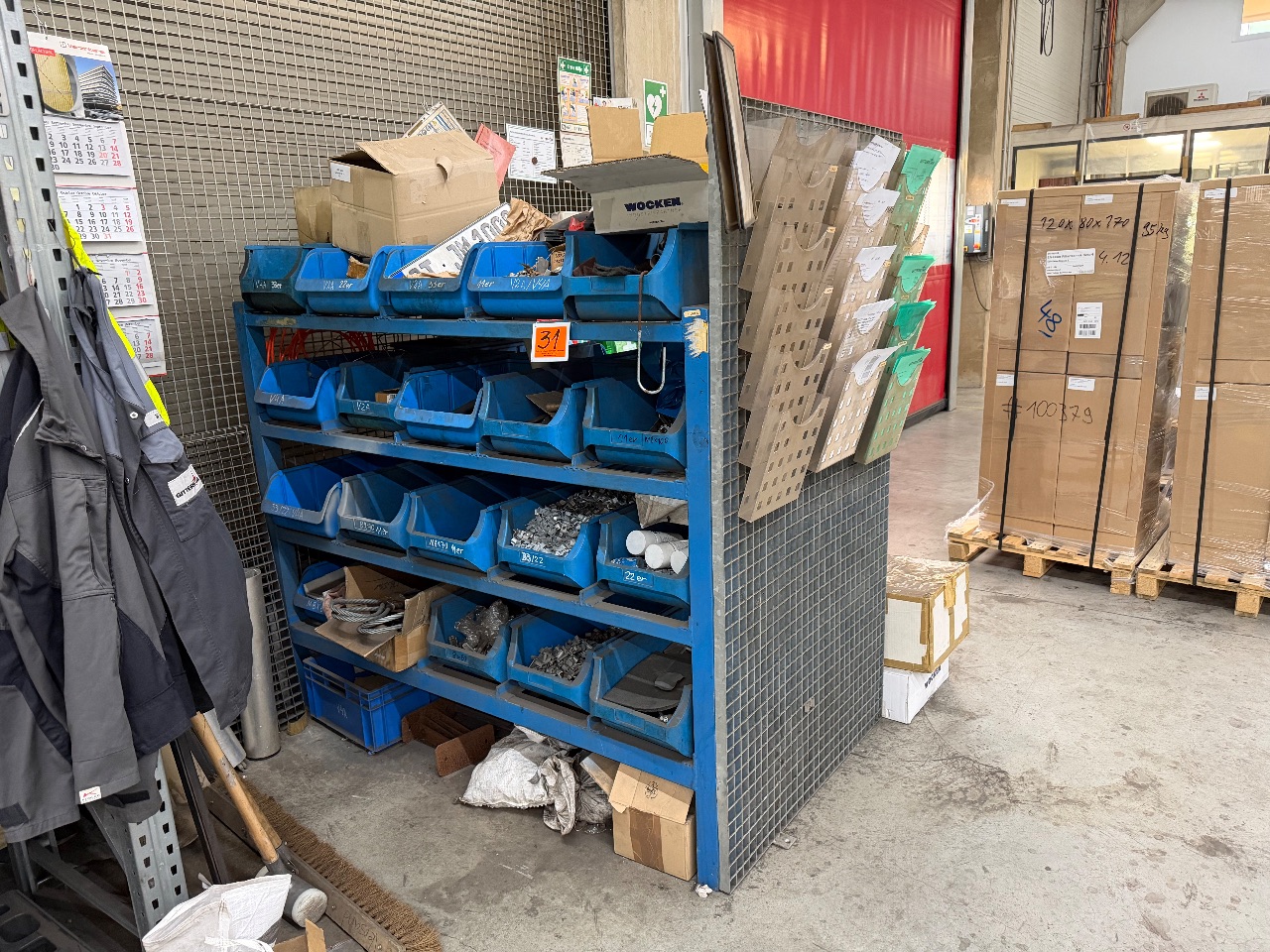 kompl. Rauminhalt des Lagers (gebrauchte + neue Ersatzteile = für Hydraulik-Hämmer, Luft-Hämmer, Hand-Druckluft-Hämmer, Schleifscheiben etc.) - (I. OG) - (incl. Regalen)