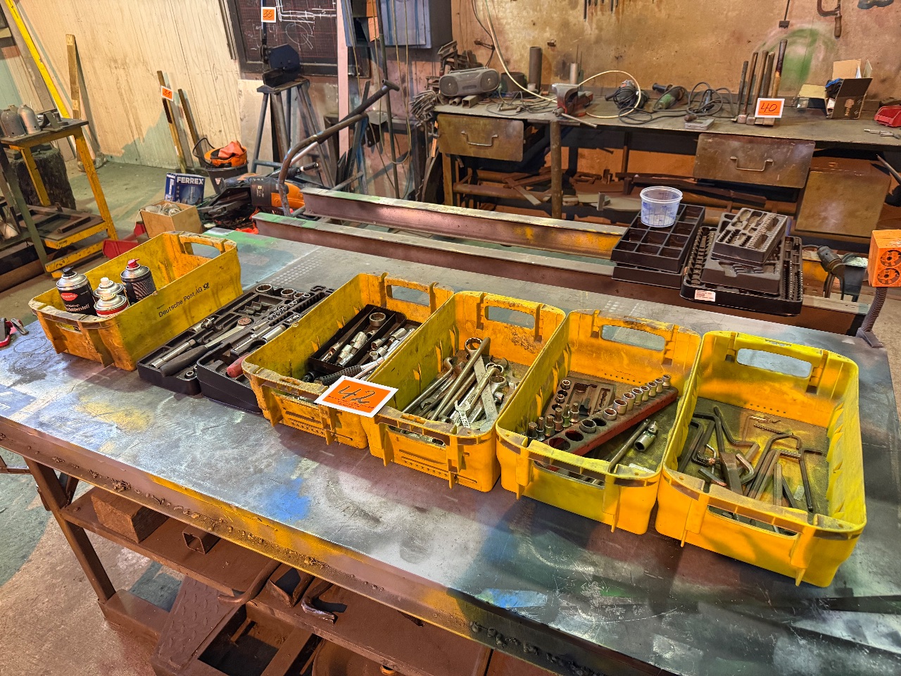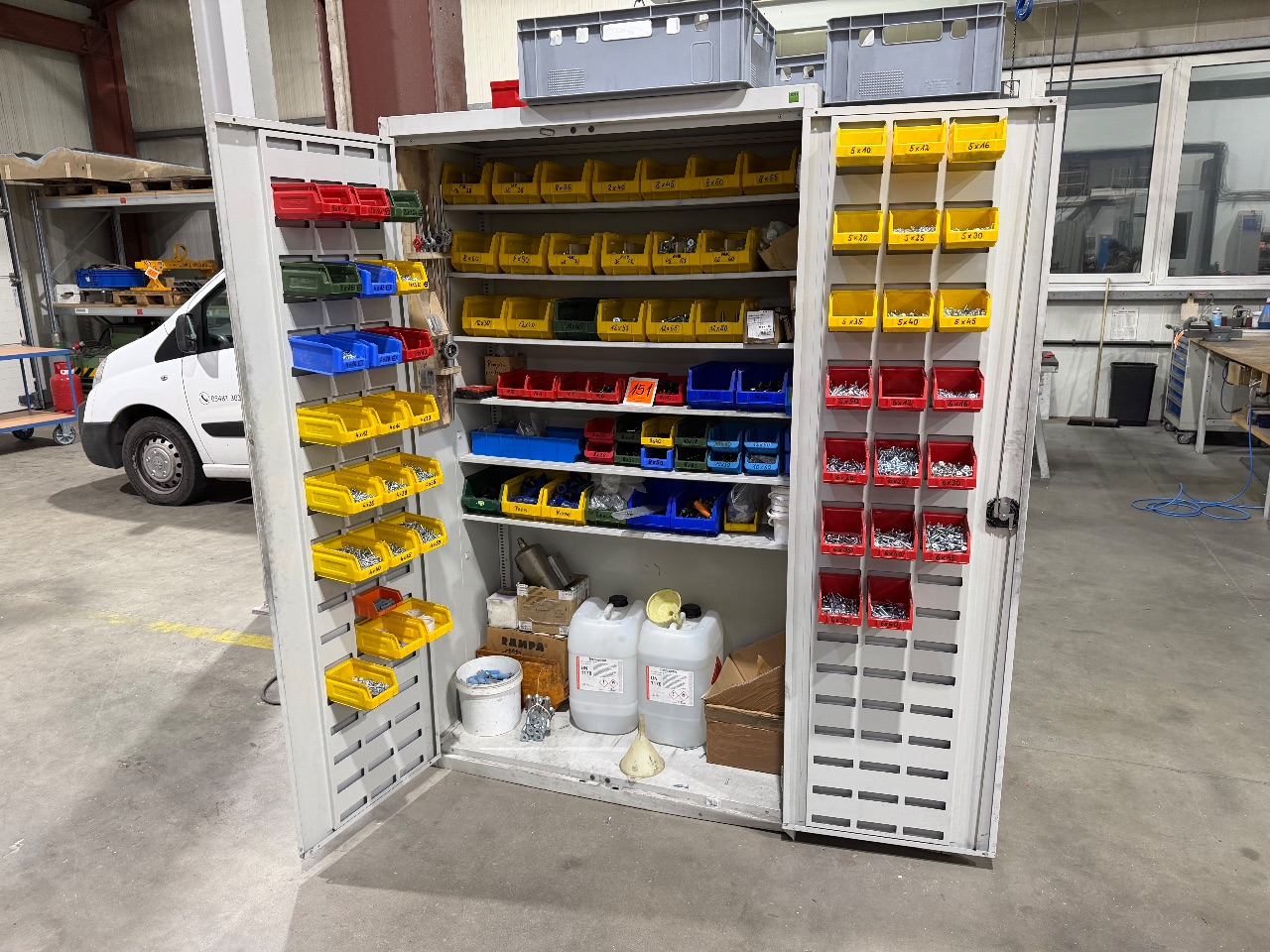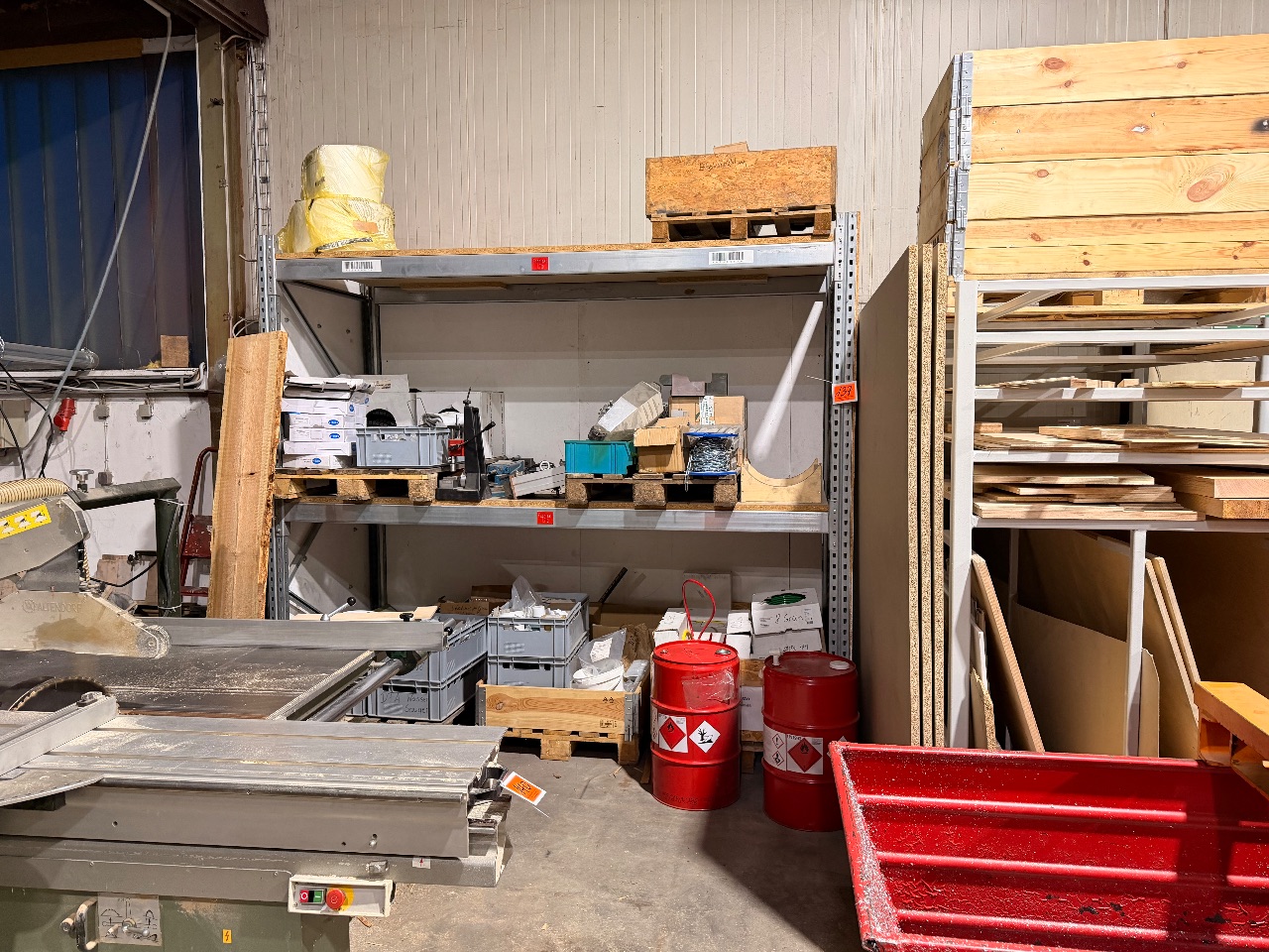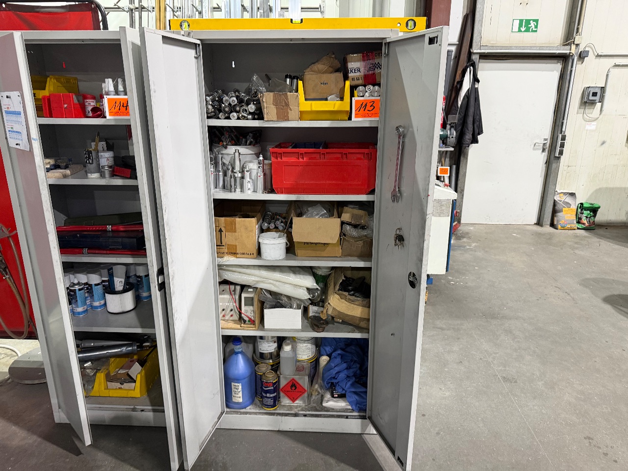 kompl. Rauminhalt des Lagers (gebrauchte + neue Ersatzteile = für Hydraulik-Hämmer, Luft-Hämmer, Hand-Druckluft-Hämmer, Schleifscheiben etc.) - (I. OG) - (incl. Regalen)