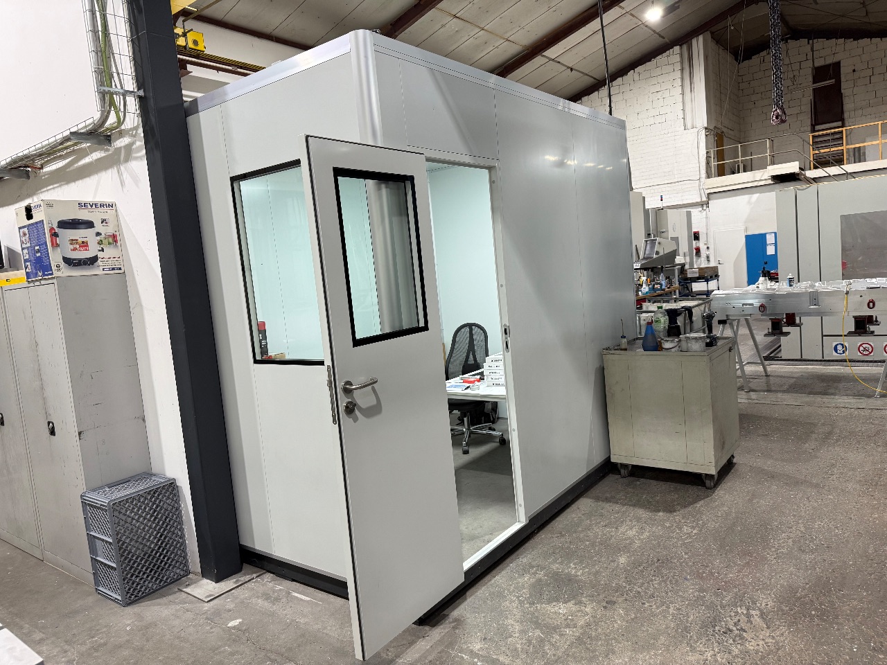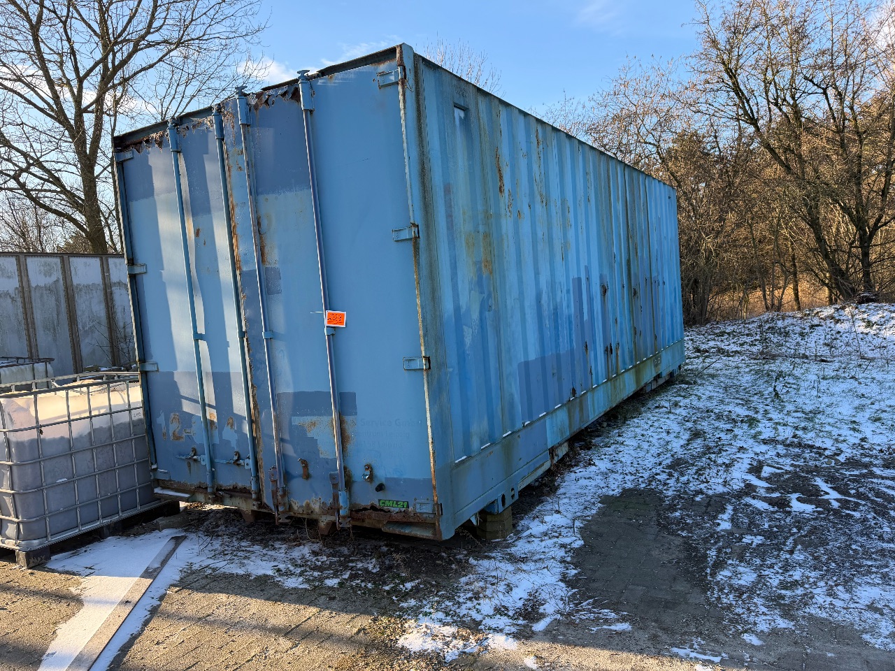 Büro-Container (mit div. Inhalt) - (Abm.: ca. 615 x 300 x 280 cm) - (Der Container muss mit Ladekran verladen werden, da kein Gabelstapler vor Ort ist.) - (Startpreis: 1,00 EUR)