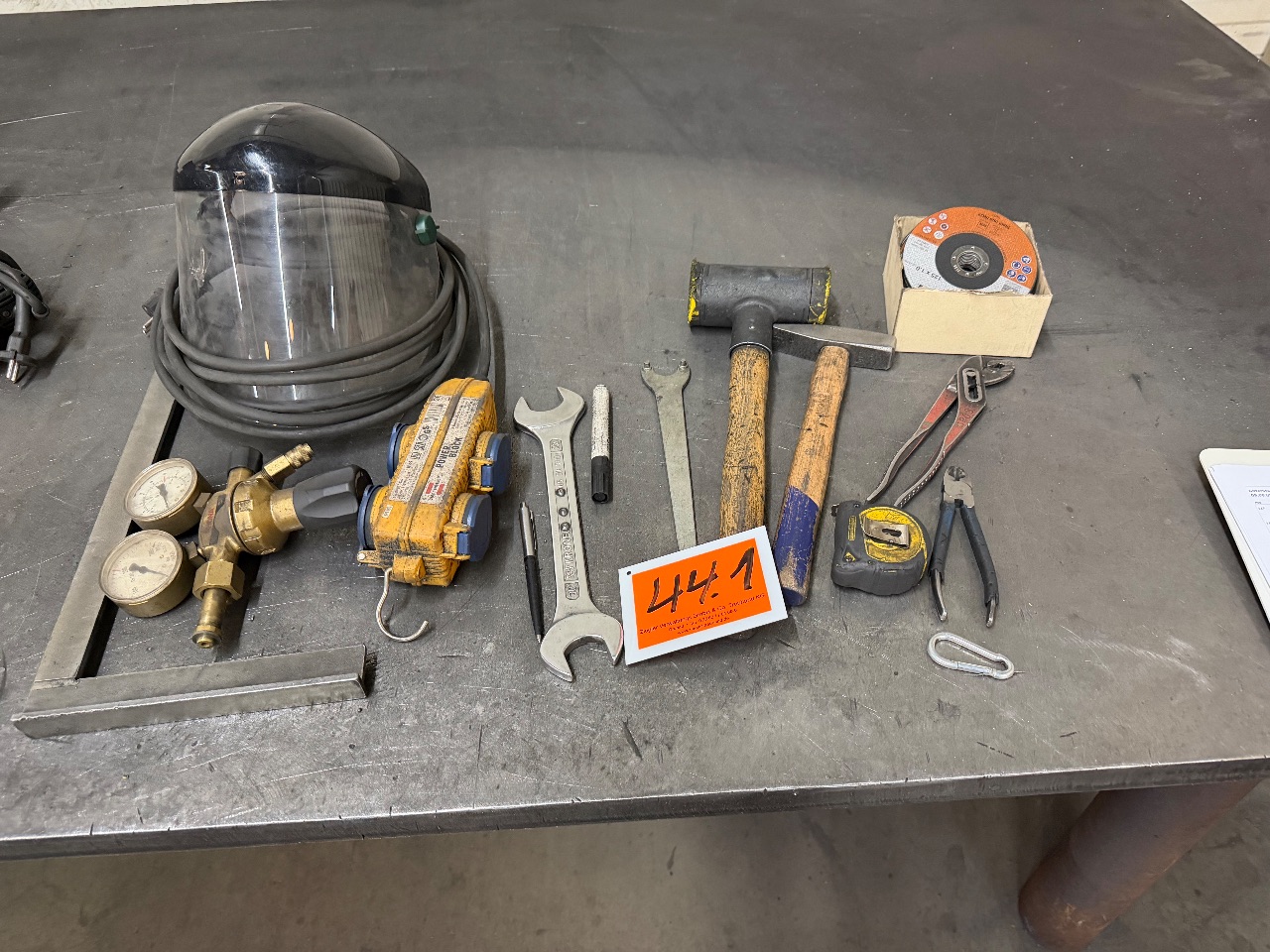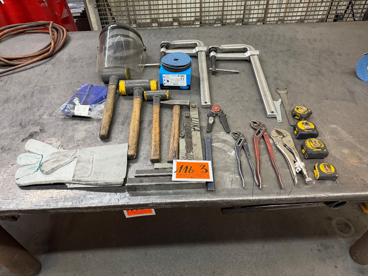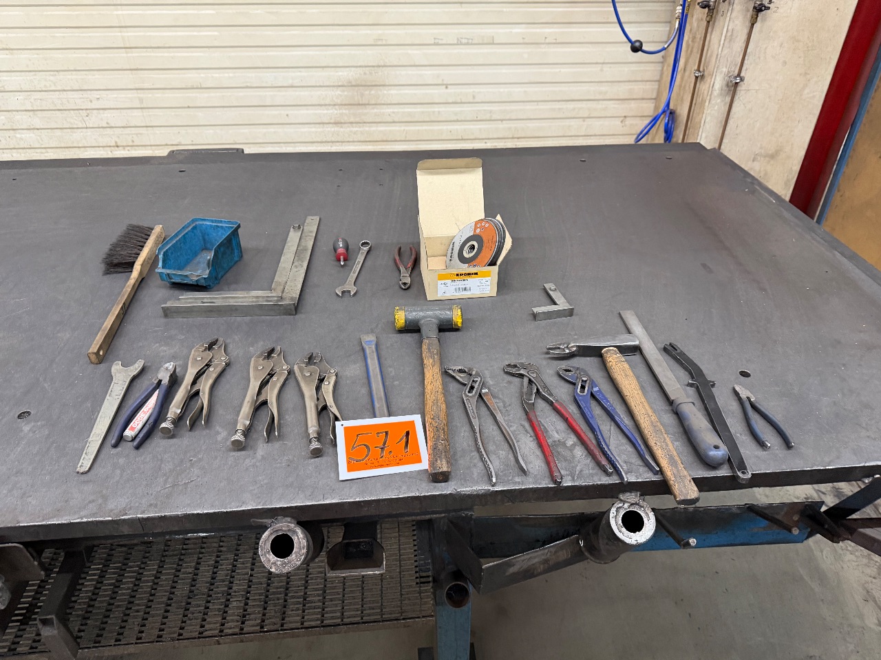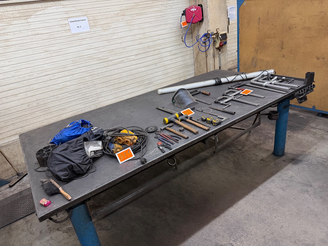 Werkbank (eins. Unterbau) - (Abm.: 150 x 70 cm) - (mit div. Kleinwerkzeugen)