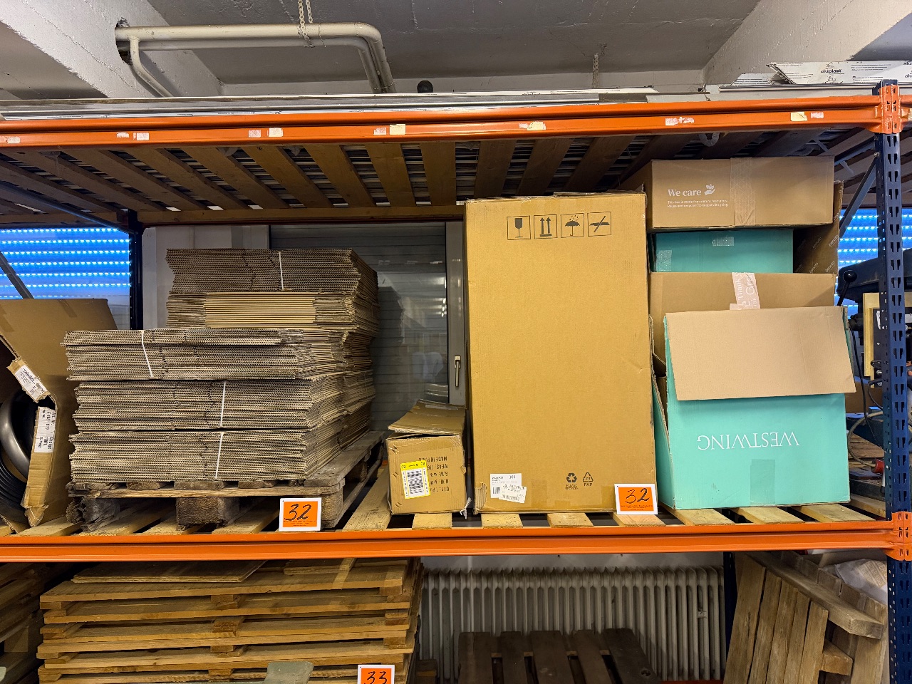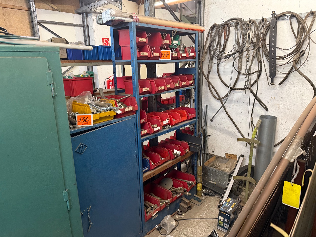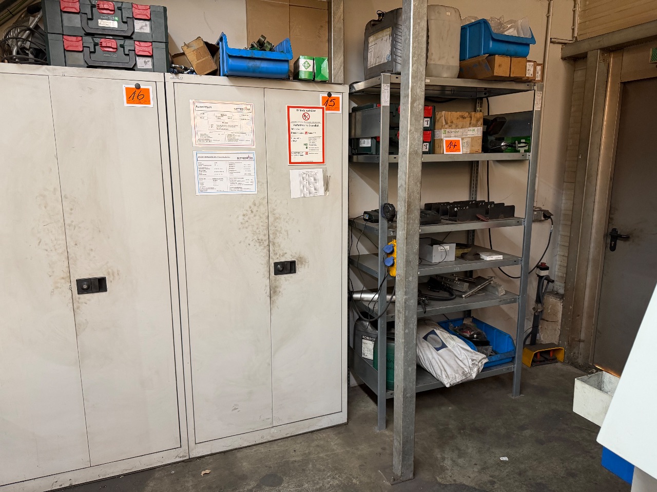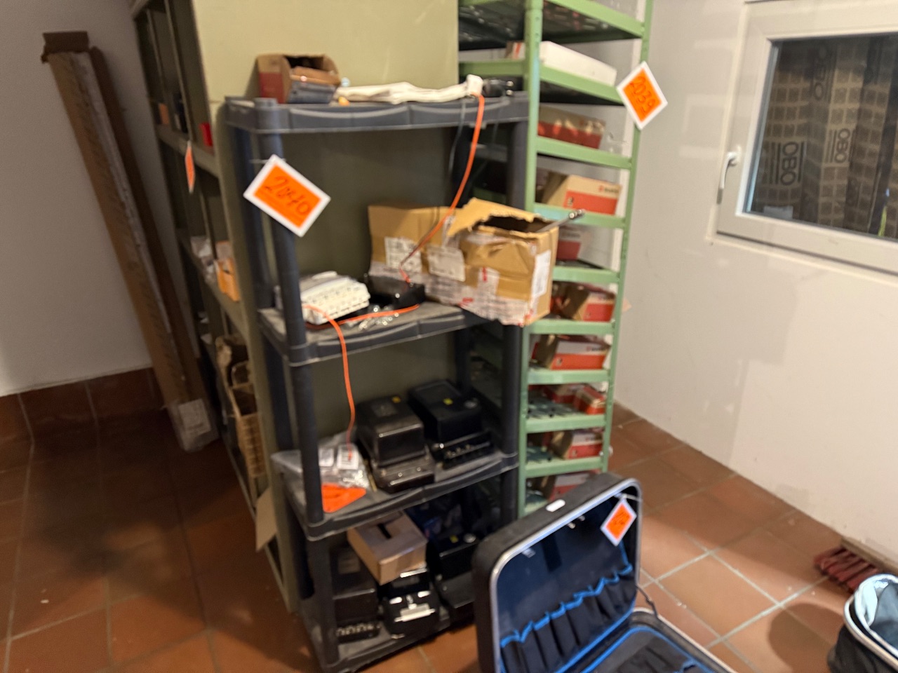kompl. Rauminhalt des Lagers (gebrauchte + neue Ersatzteile = für Hydraulik-Hämmer, Luft-Hämmer, Hand-Druckluft-Hämmer, Schleifscheiben etc.) - (I. OG) - (incl. Regalen)