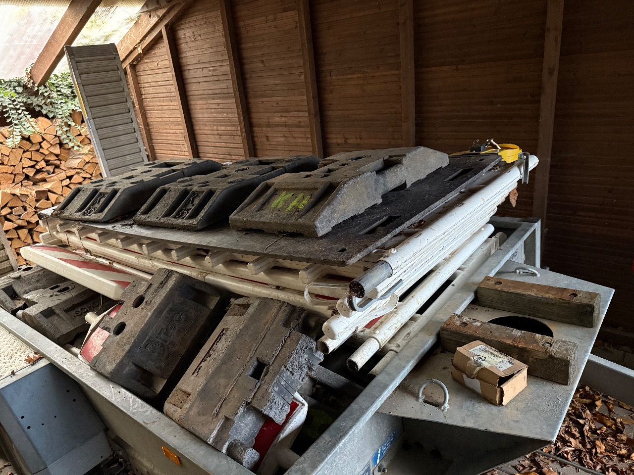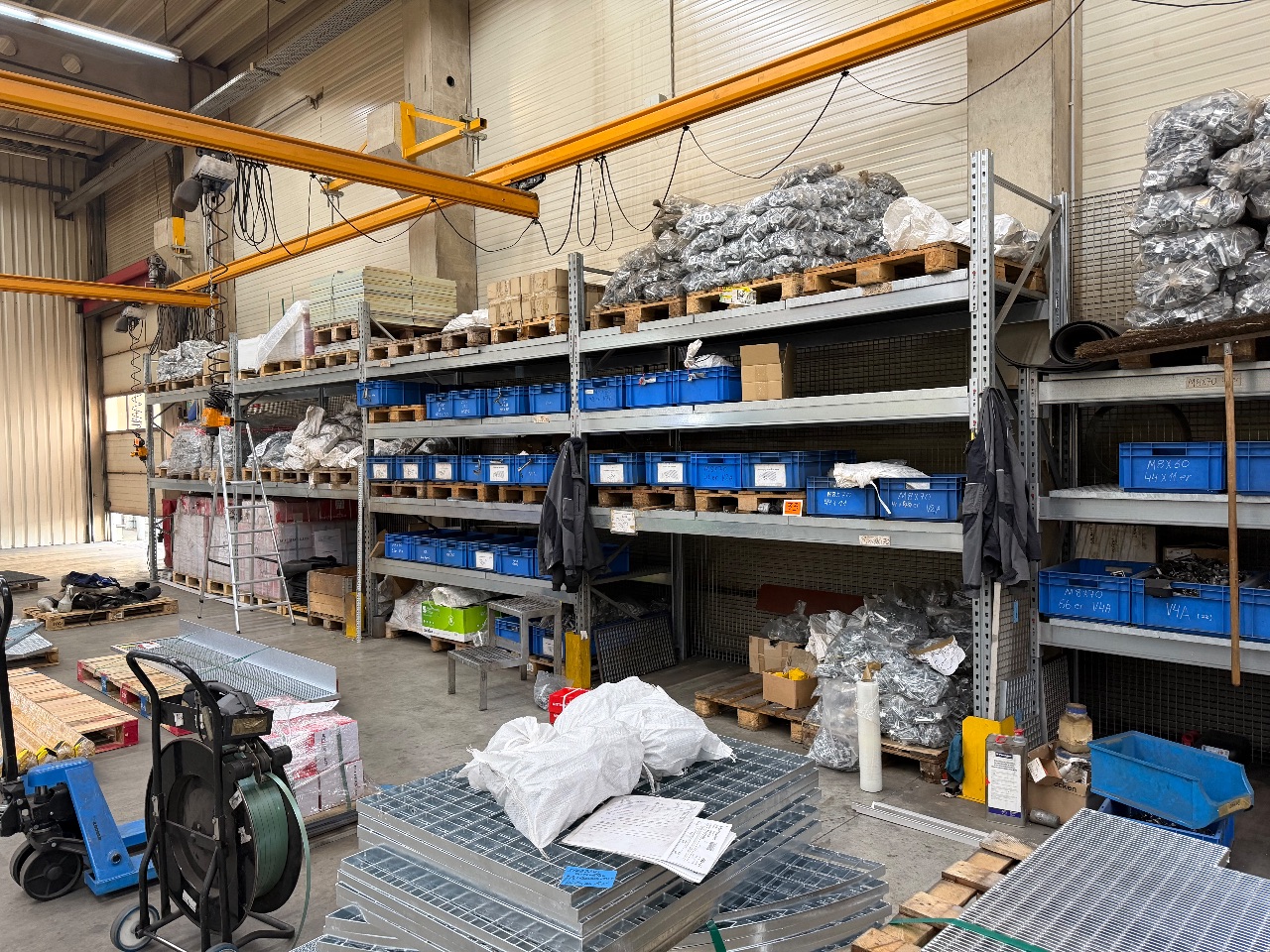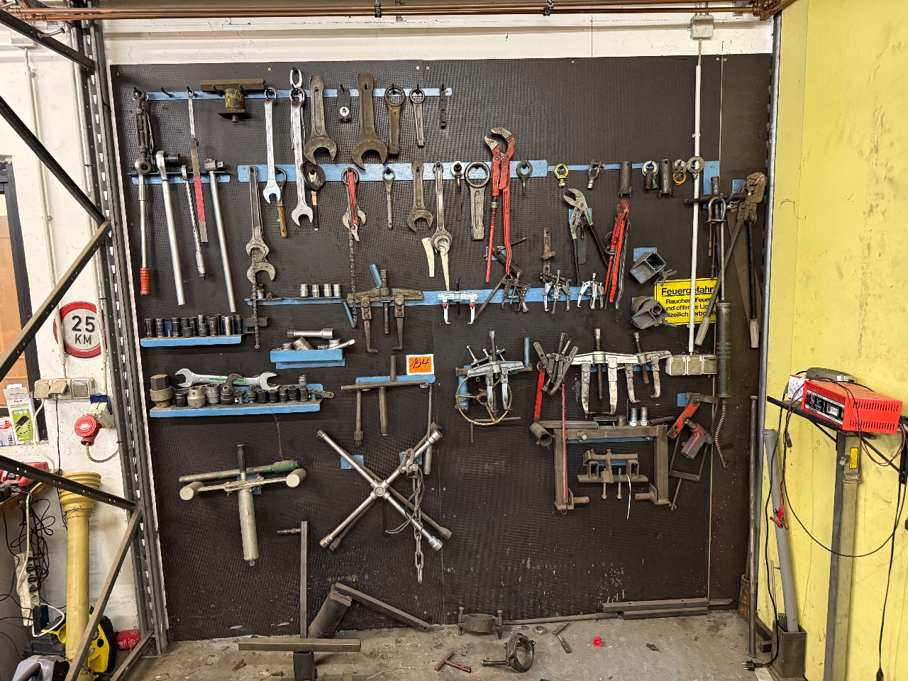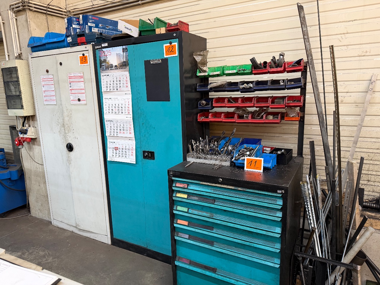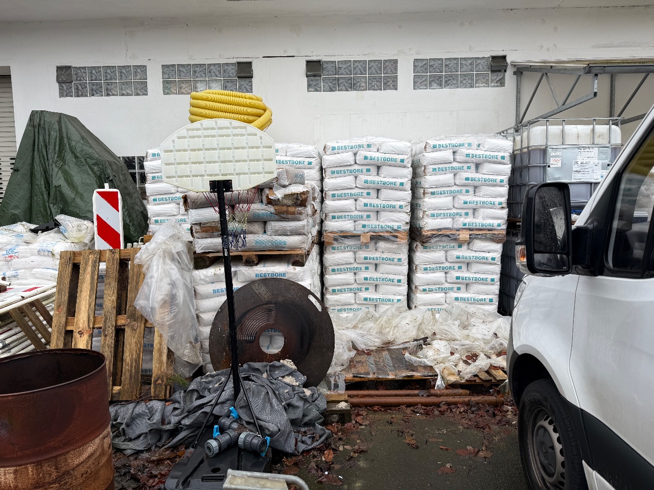 kompl. Rauminhalt des Lagers (gebrauchte + neue Ersatzteile = für Hydraulik-Hämmer, Luft-Hämmer, Hand-Druckluft-Hämmer, Schleifscheiben etc.) - (I. OG) - (incl. Regalen)