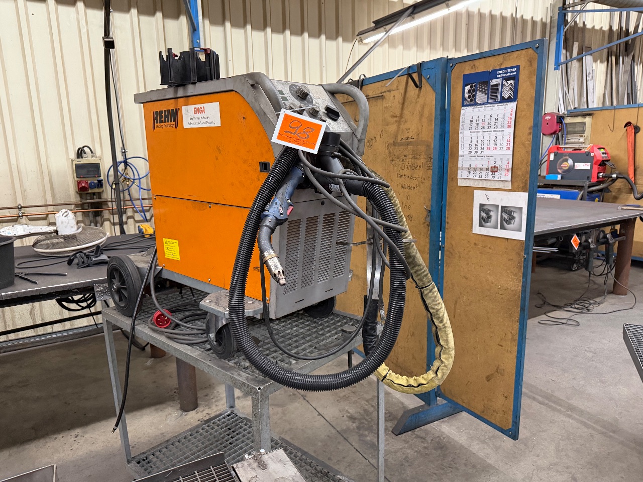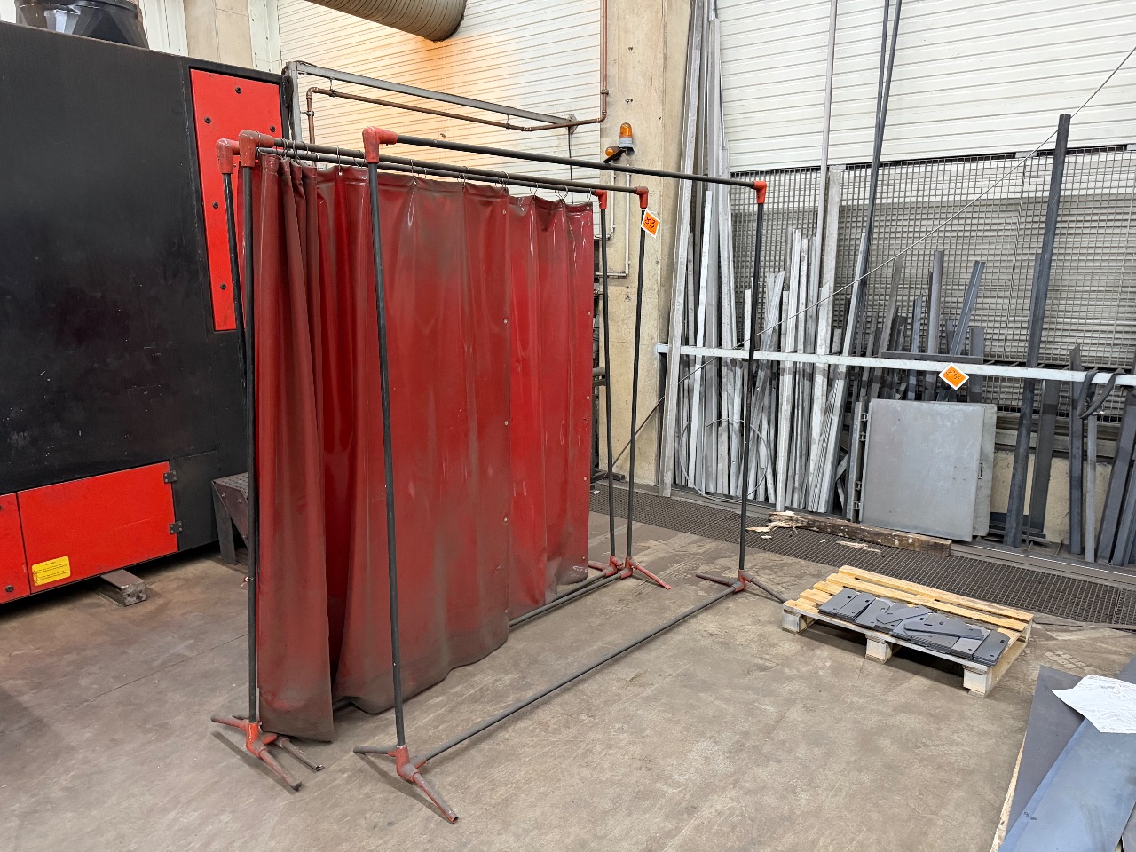 Eisen-Regal (mit Holz-Ablageböden) + (div. Ersatzteilen Mehrreihenfräse - Comeb, Badalini)