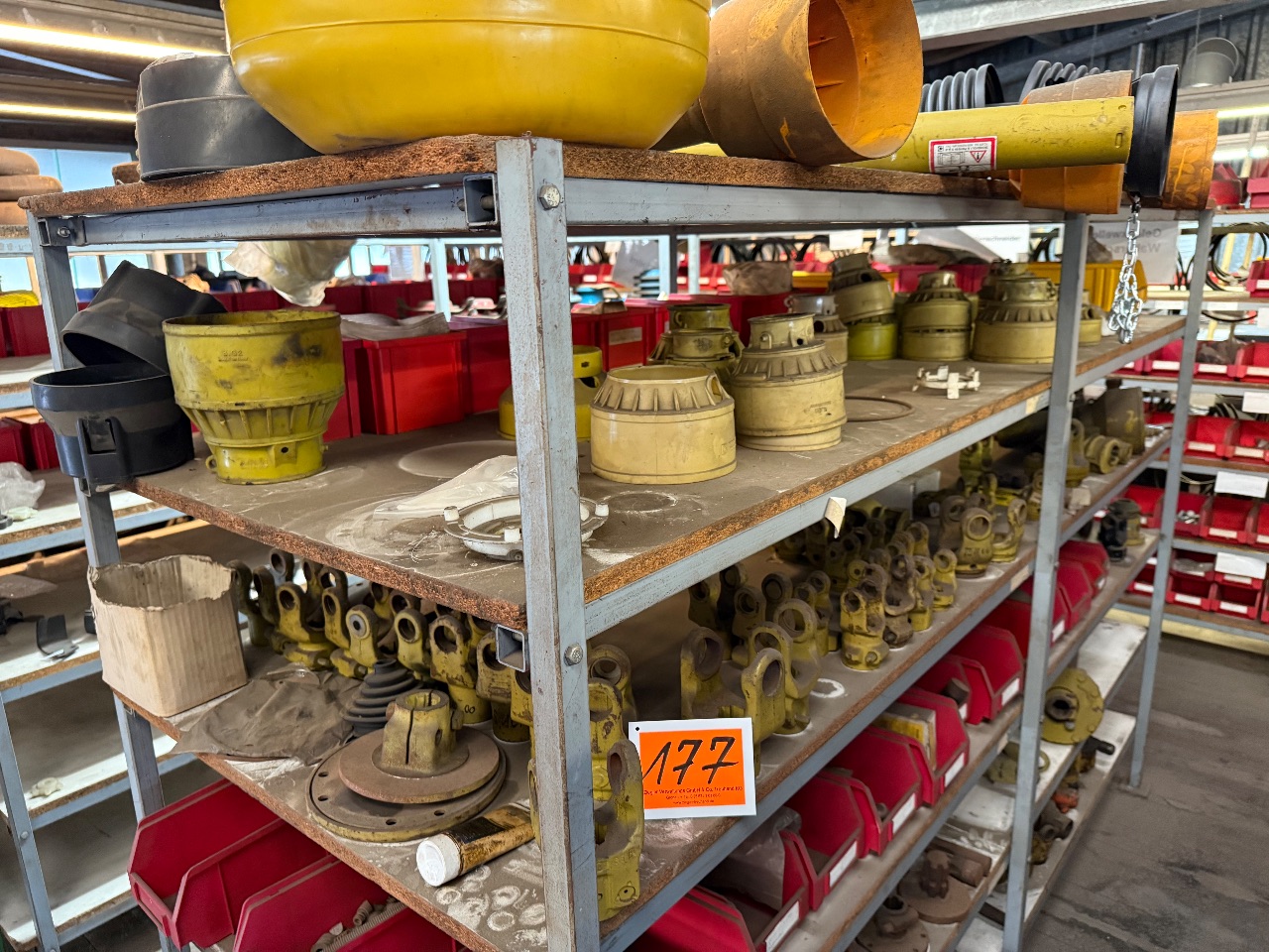 Posten div. Ersatzteile (Atlas Copco, LST, Rammer - Zuganker, Schlagkolben etc.) - (geschätzter EK: 3.000,00 - 4.000,00 EUR) - (ohne 5-teiliges Regal)