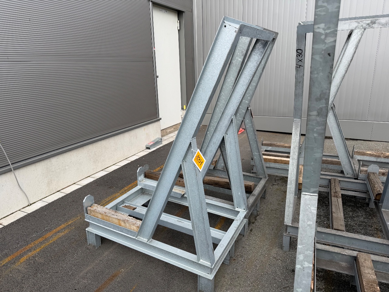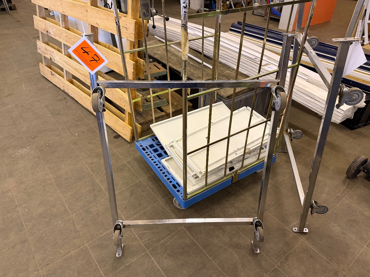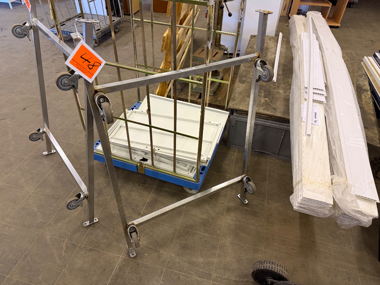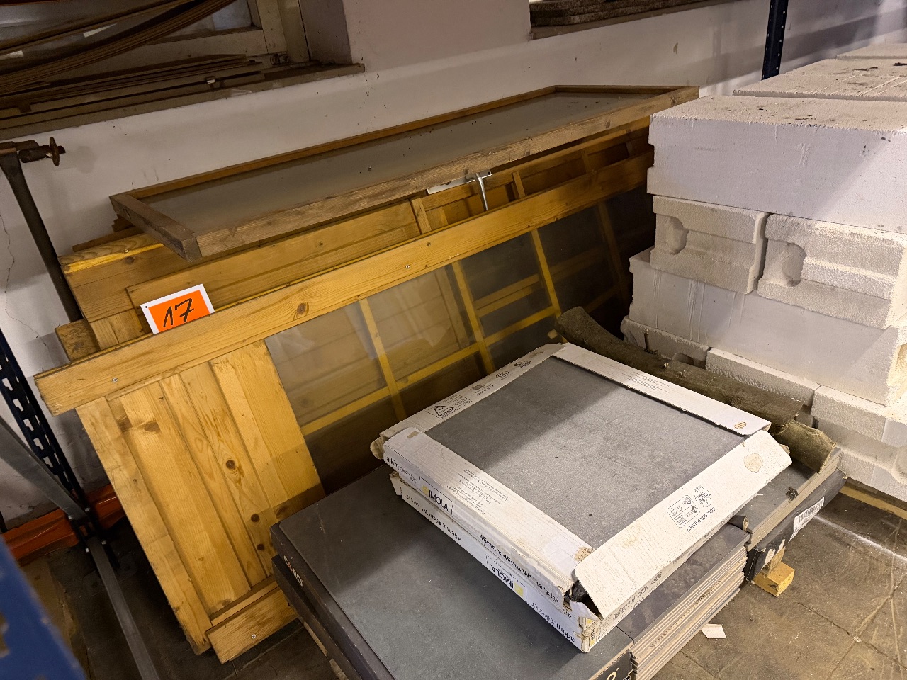 Hänge- und Regalanlage auf Holz-Podest (3) - (Bruynzeel) - (Bj.: 2002) - (Abm.: 610 x 400 x 273 cm) - (je 5 Hängevorrichtungen + 2 Ablageböden)