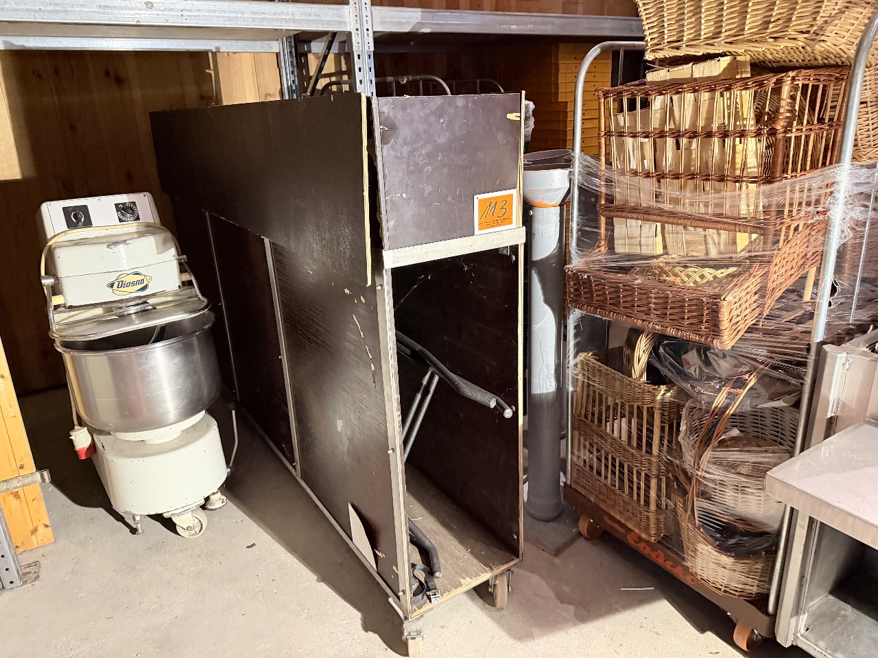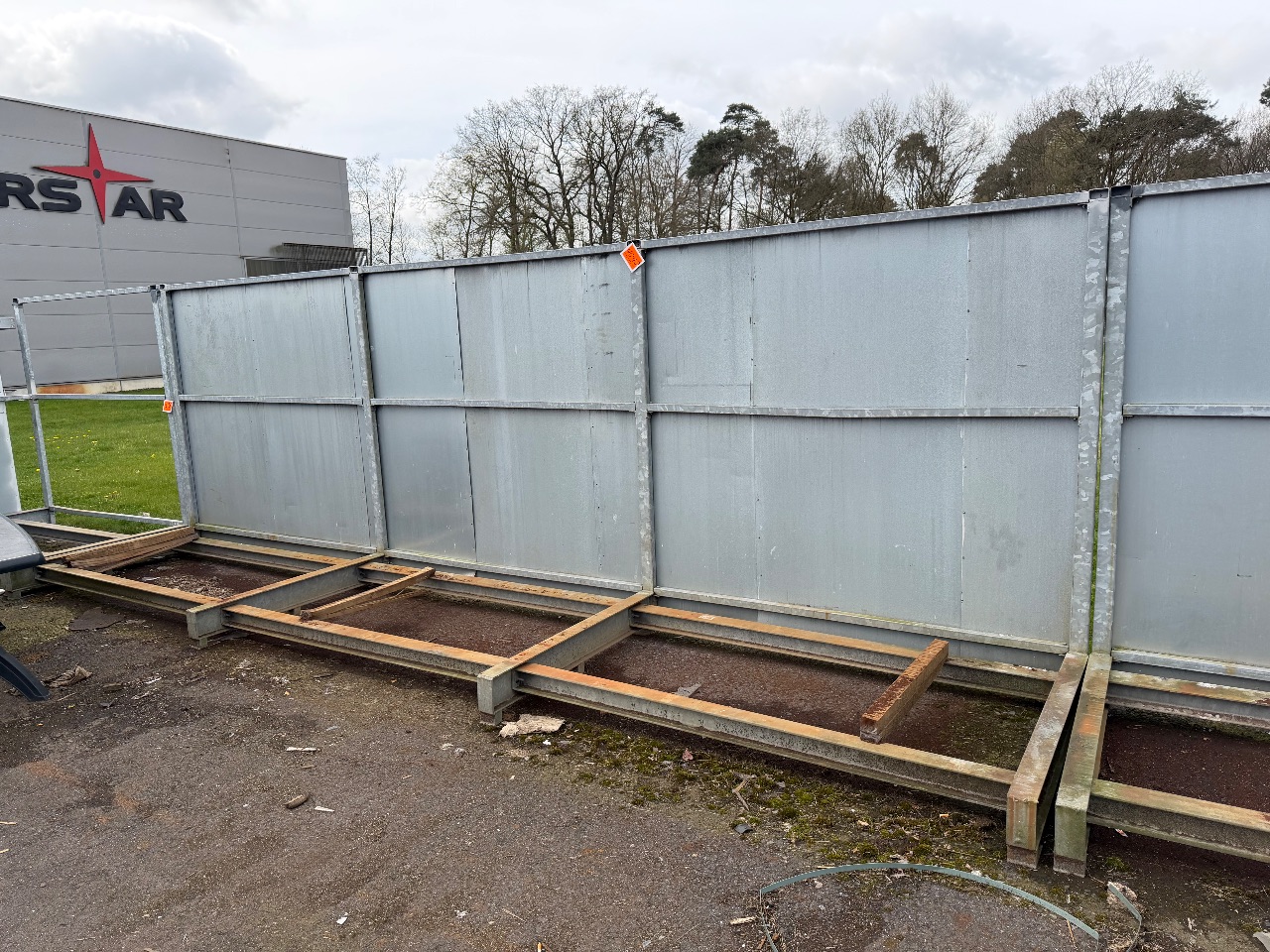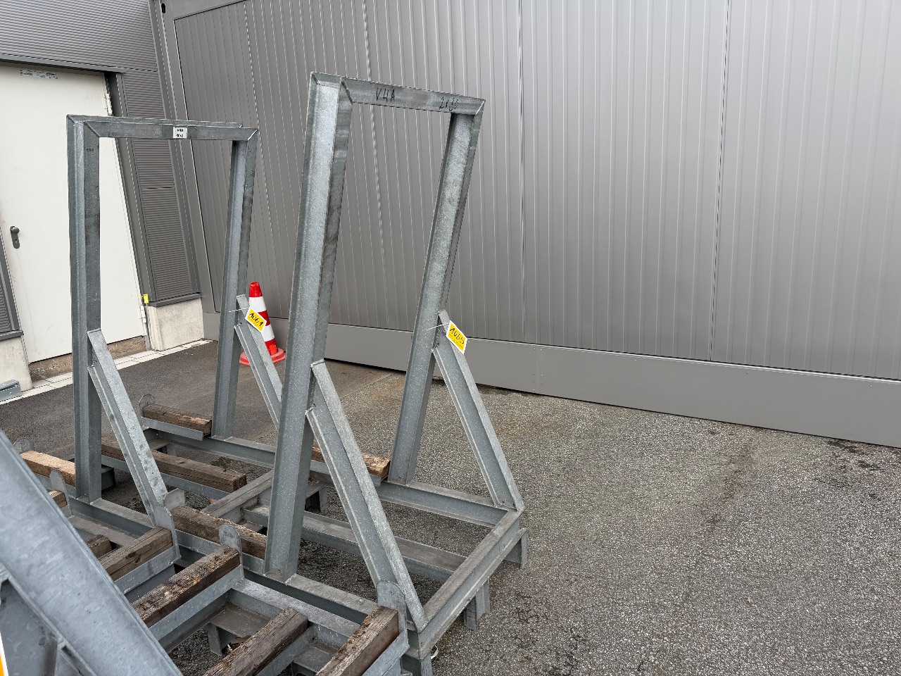 Hänge- und Regalanlage auf Holz-Podest (3) - (Bruynzeel) - (Bj.: 2002) - (Abm.: 610 x 400 x 273 cm) - (je 5 Hängevorrichtungen + 2 Ablageböden)