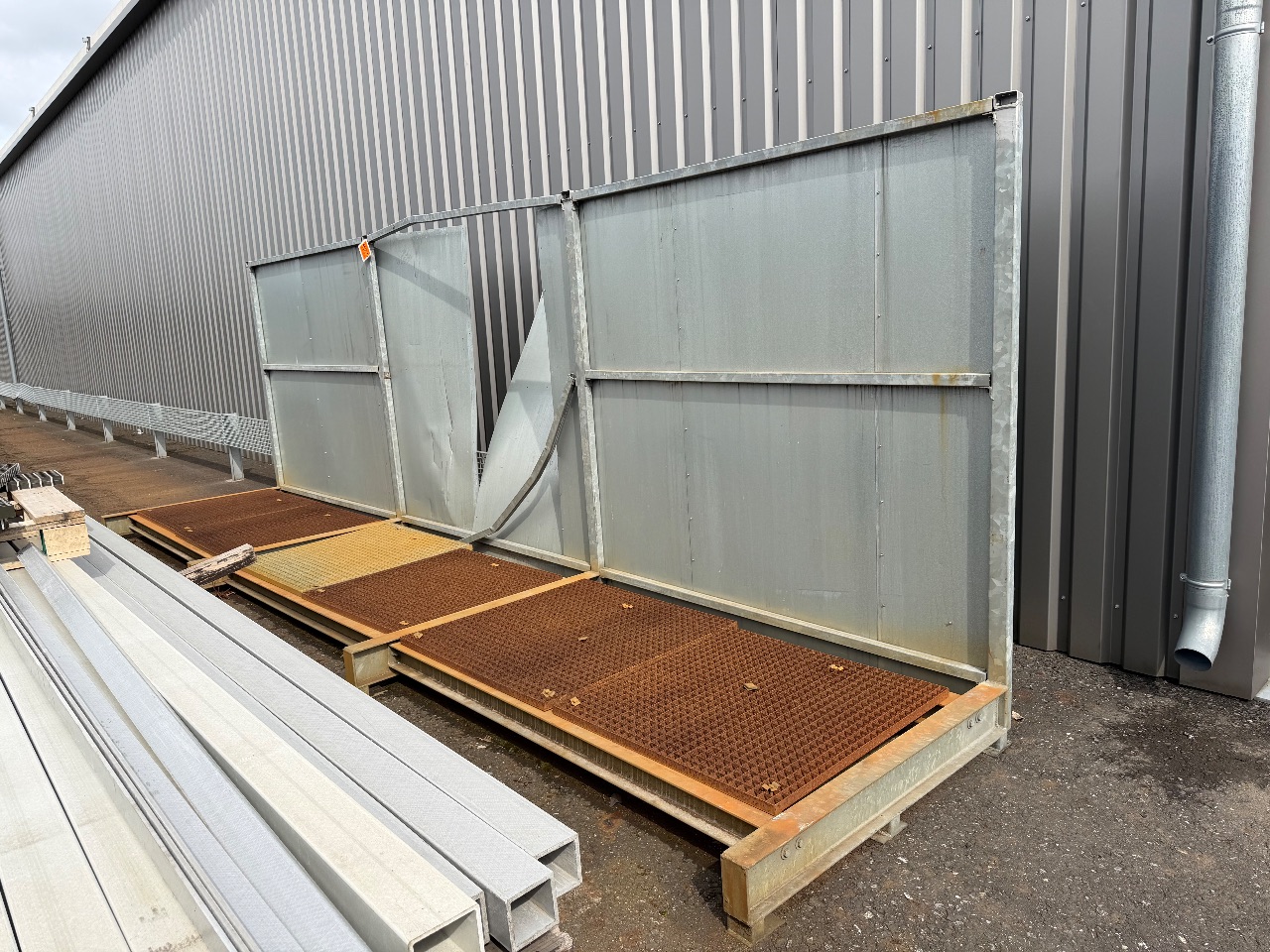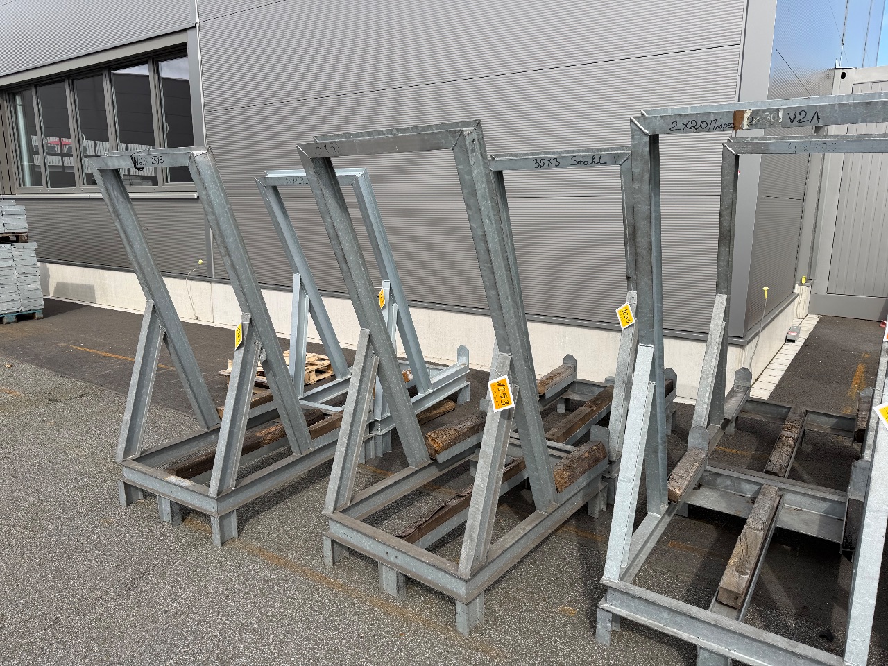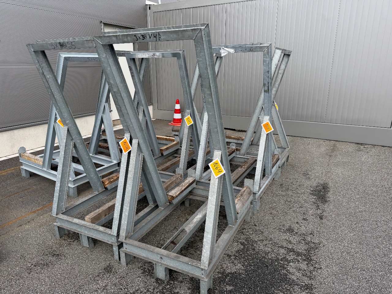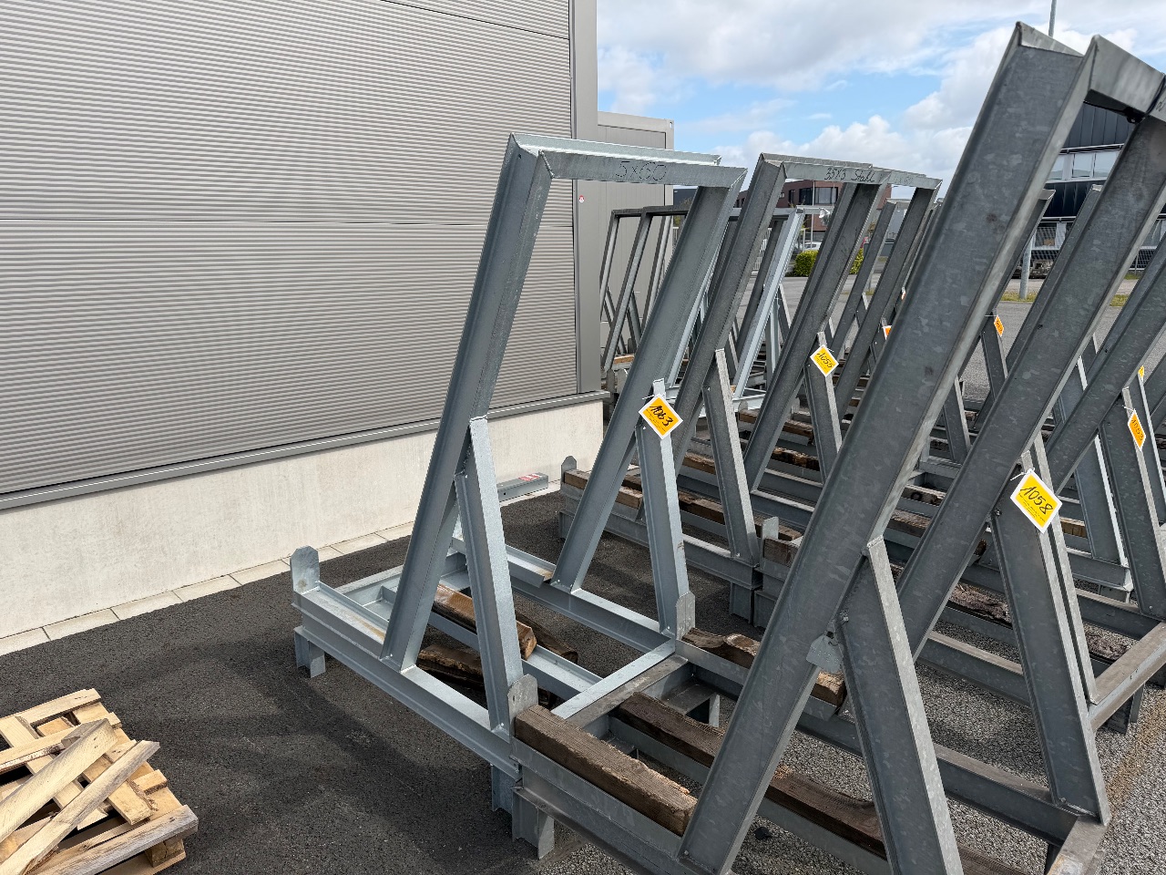 Hänge- und Regalanlage auf Holz-Podest (3) - (Bruynzeel) - (Bj.: 2002) - (Abm.: 610 x 400 x 273 cm) - (je 5 Hängevorrichtungen + 2 Ablageböden)