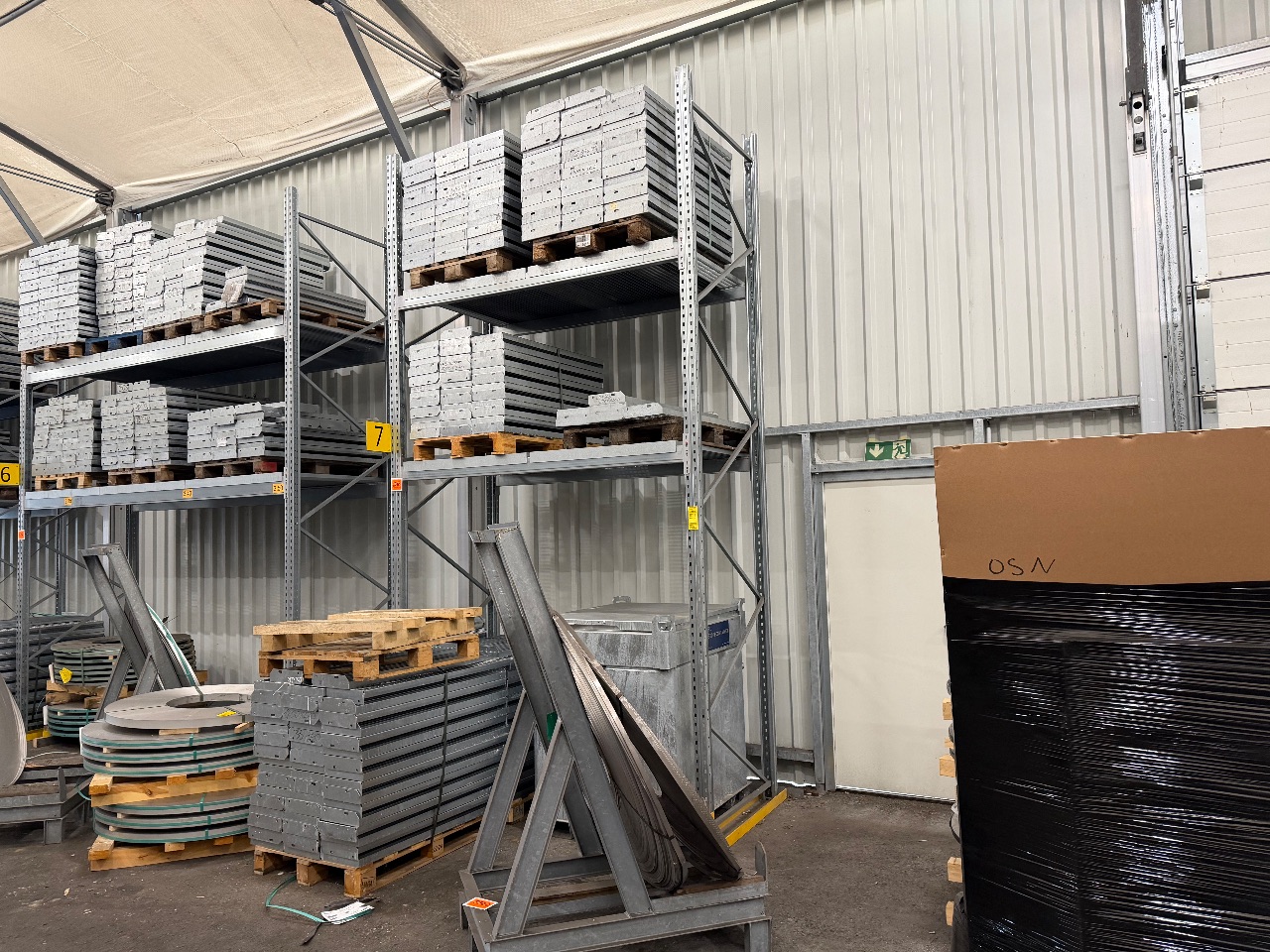 Paletten-Schwerlastregal (39,6 m) - (SSi Schäfer, PR 600) mit Pollern) - (Hinweis zur Belastung: siehe Foto)