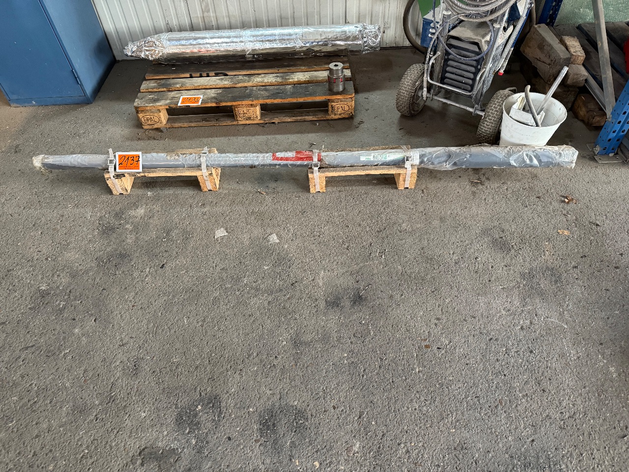 Paletten-Doppel-Schwerlastregal (mit Pollern) - (79,2 m) - (Hinweis zur Belastung: siehe Foto)