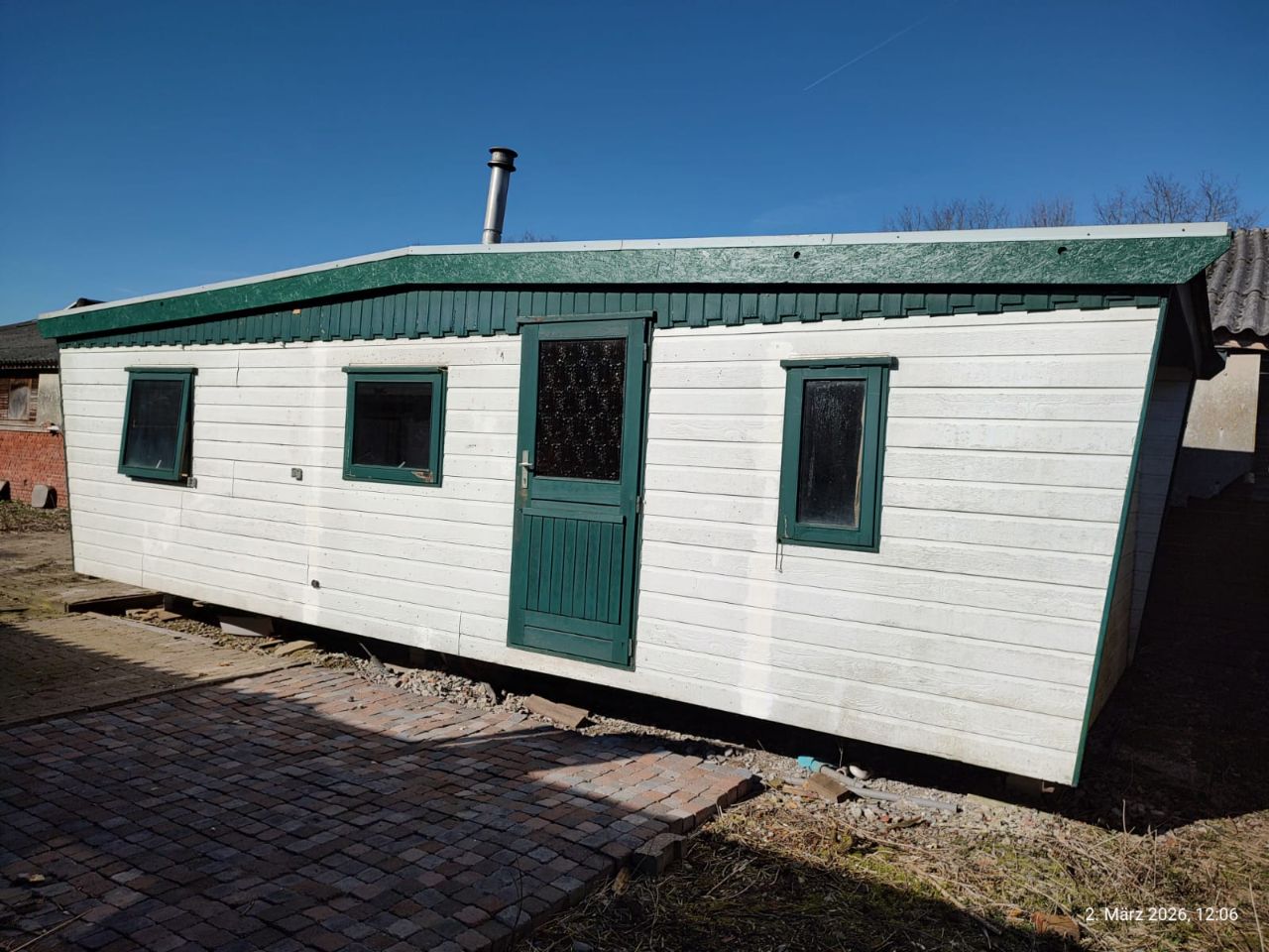 Mobilheim inkl. Anbau (ca. 43 qm) - (ca. 9,85 x 3,40 m & 3,60 x 2,85 m) - (elektrisch beheizt u. klimatisiert) - (Pachtvertrag kann übernommen werden) - (Differenzbesteuerung) - (Skizze auf der letzten Seite) - (Startpreis: 8.000,00 EUR)