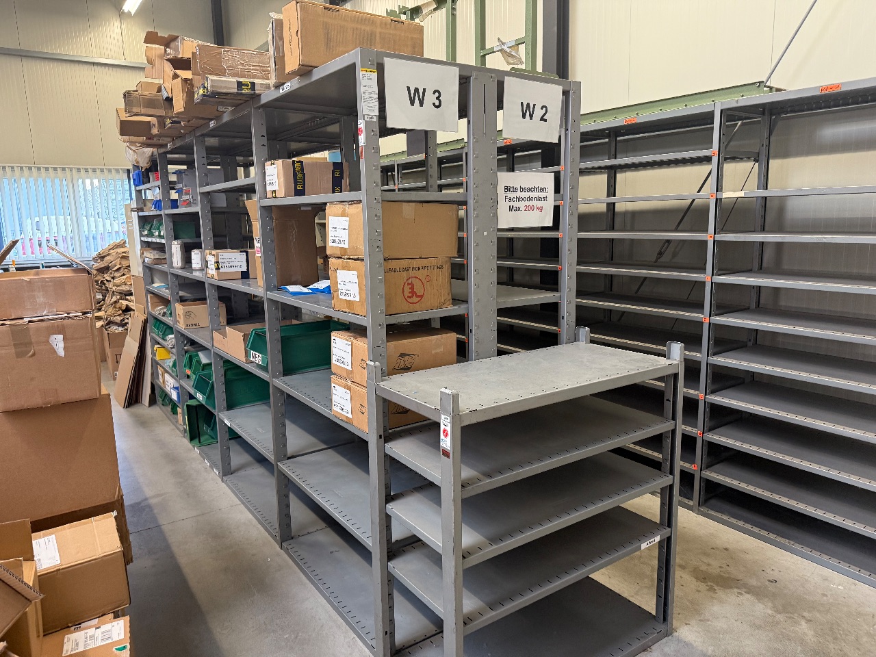 Metall-Regalanlage (Gesamt: 130 lfdm.) - (2-etagig) - (Abm.: je 14,30 x 12,80 m = 183 qm = Gesamt: 366 qm) - (Details im Langtext) - (ohne Mindestpreis) - (Startpreis: 1,00 EUR)